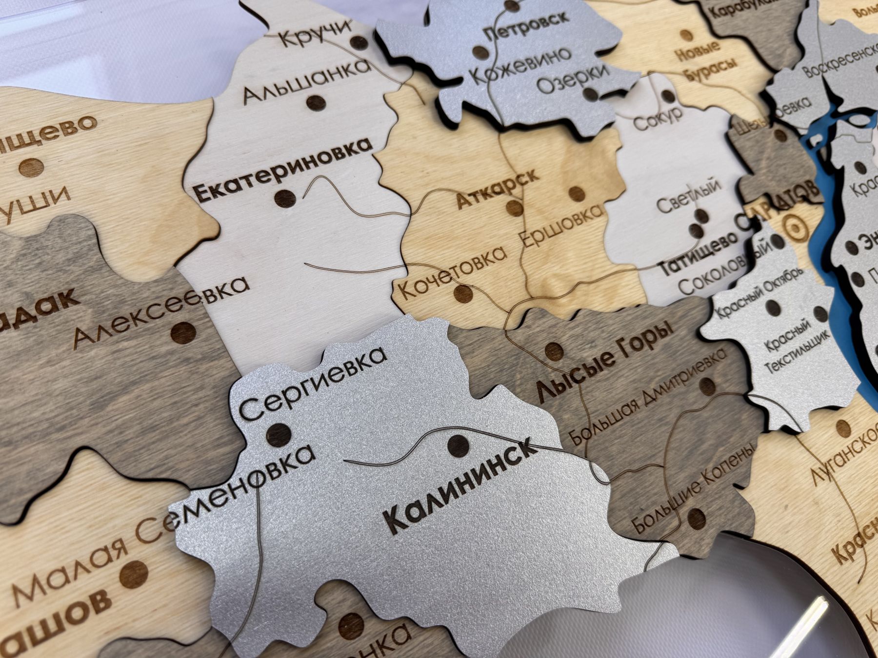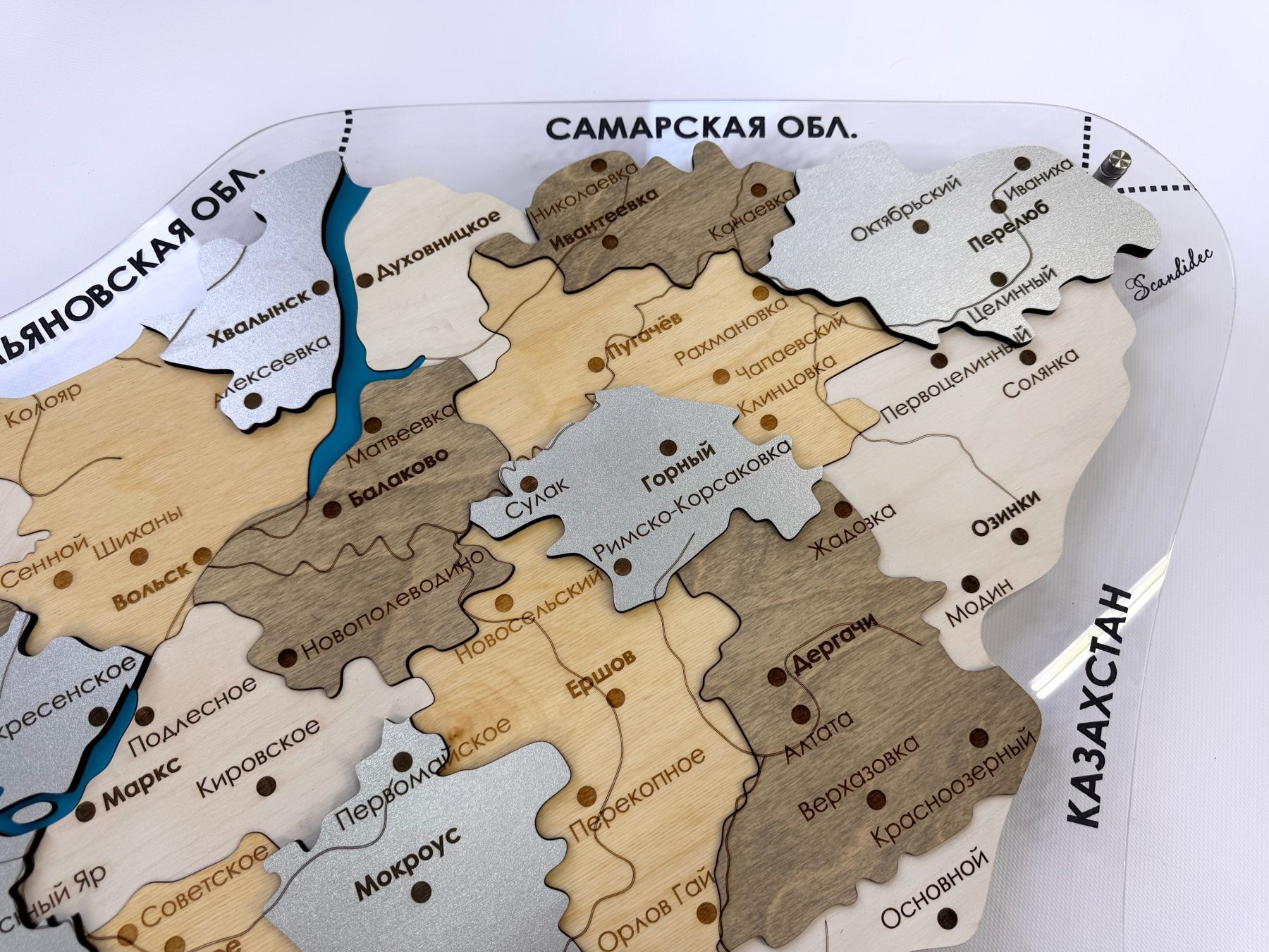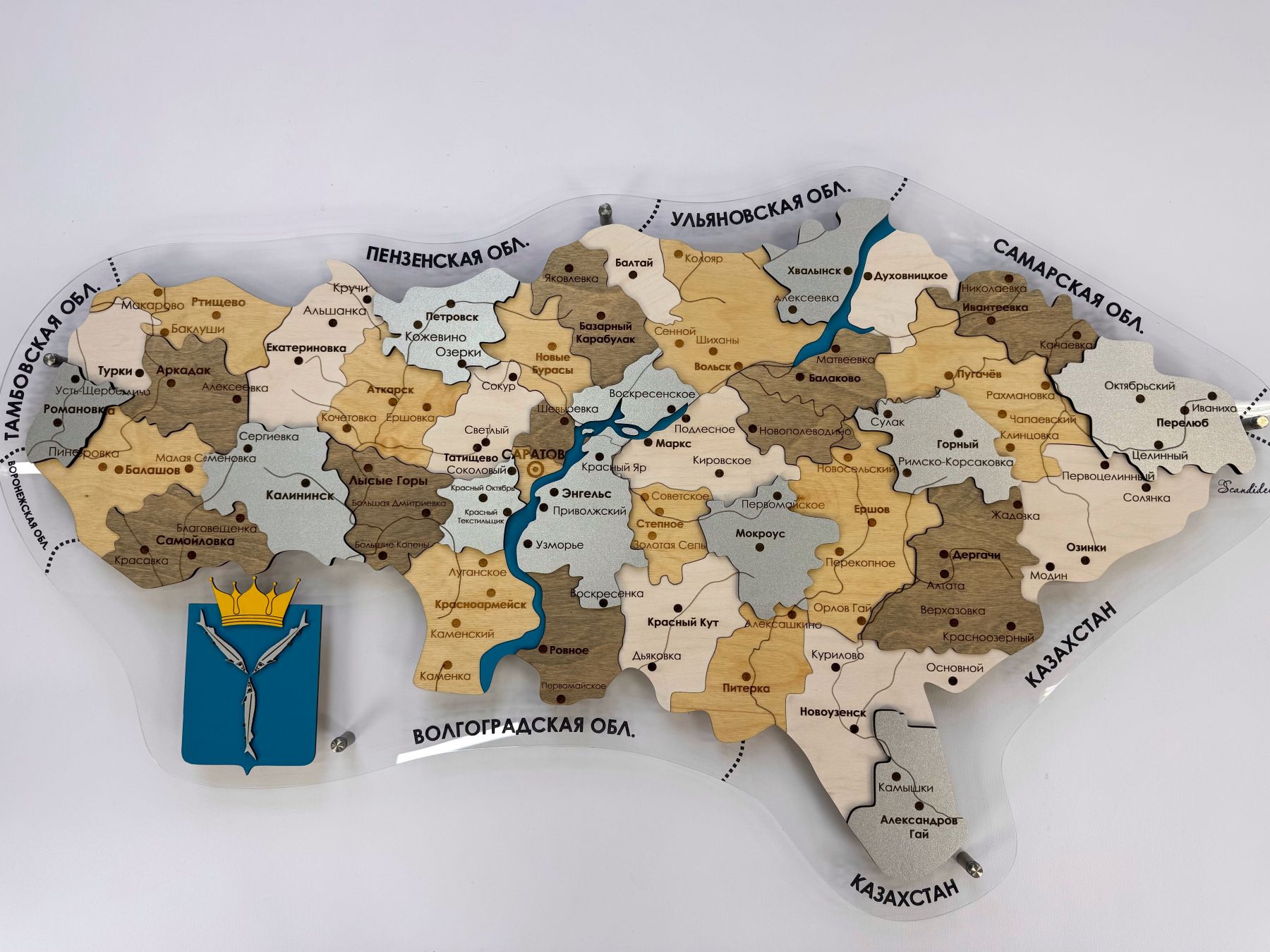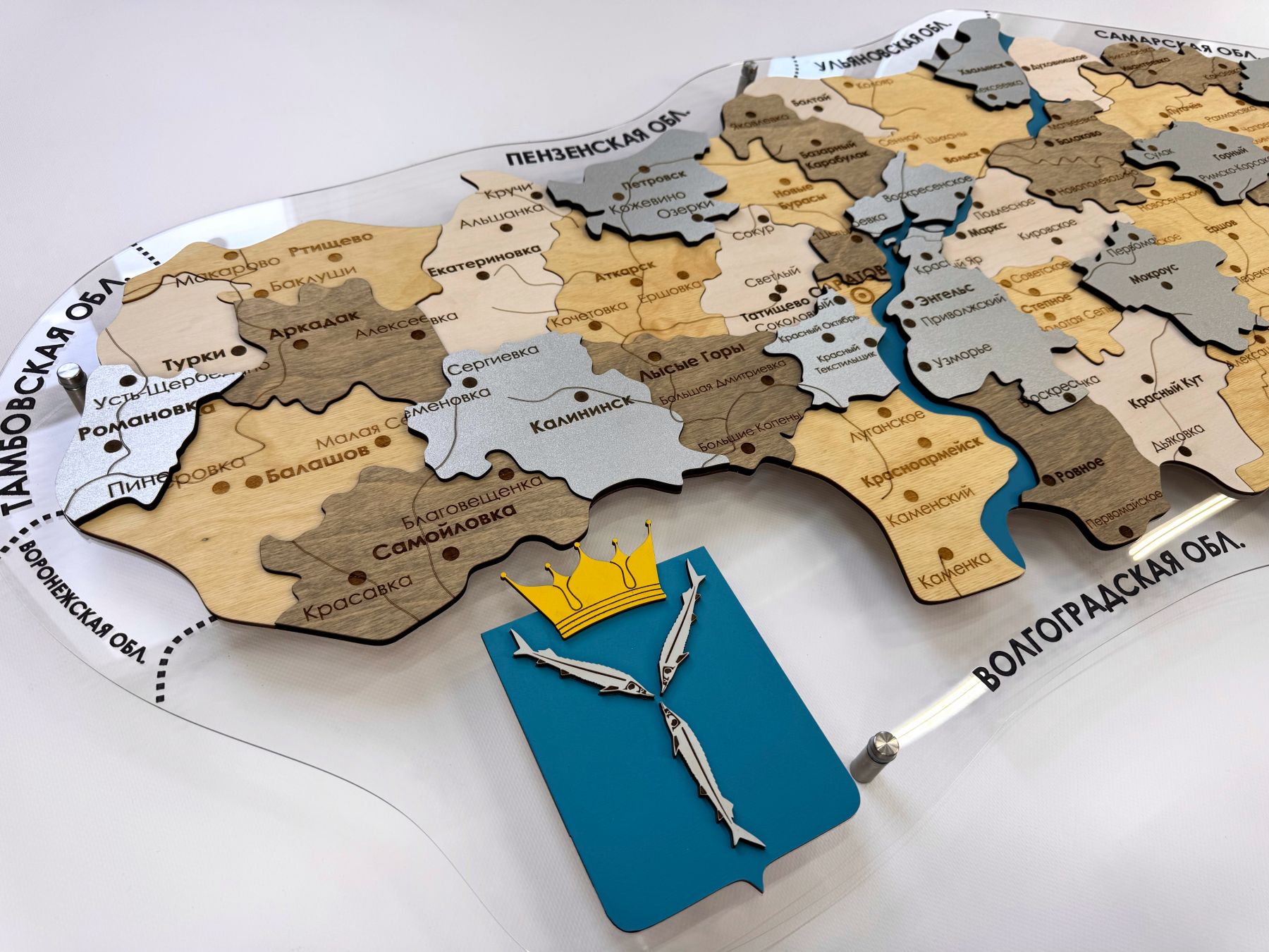 Очередная новинка в нашем каталоге карт регионов России - многоуровневая карта Саратовской области из дерева, на подложке из орг.стекла.
