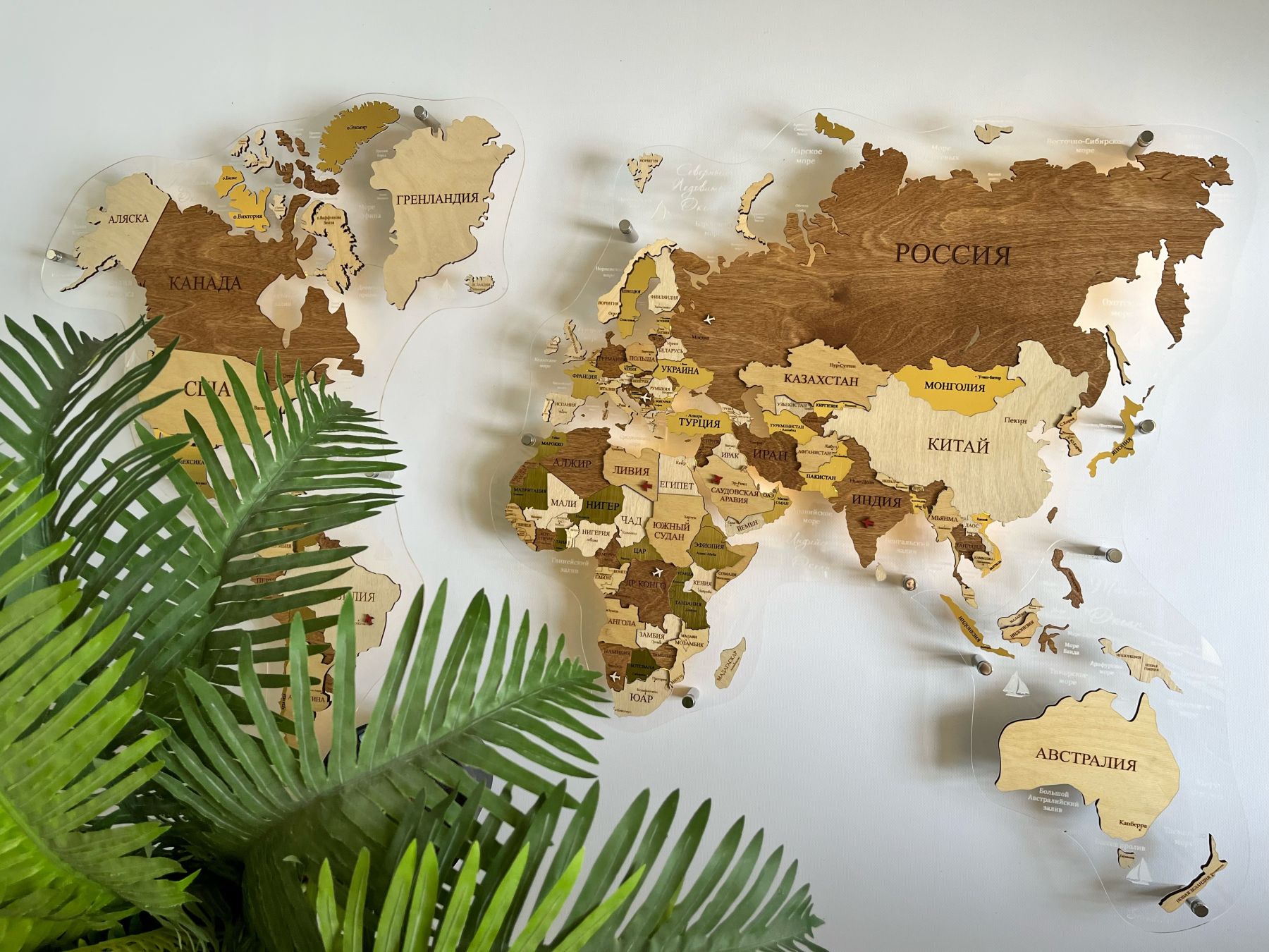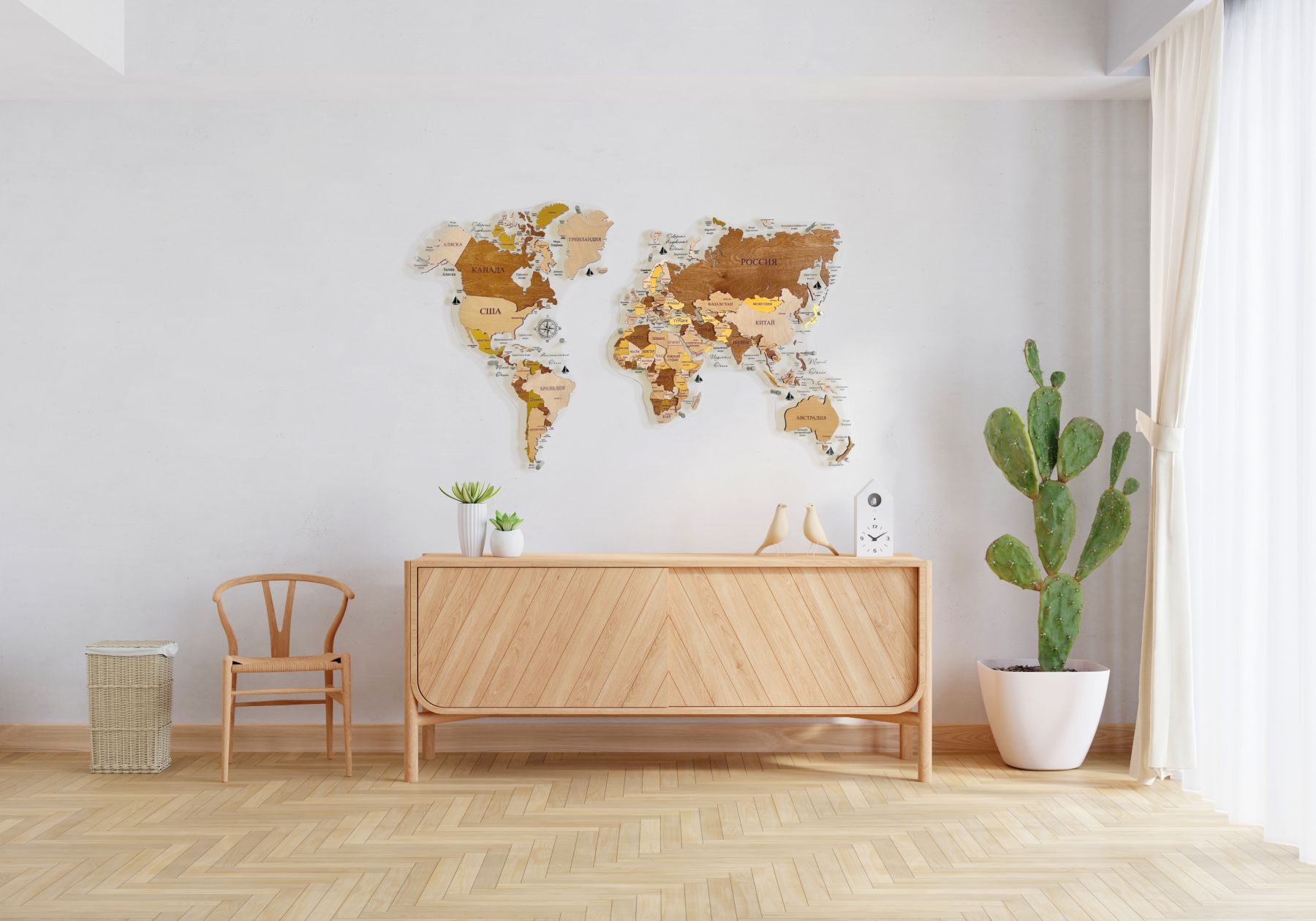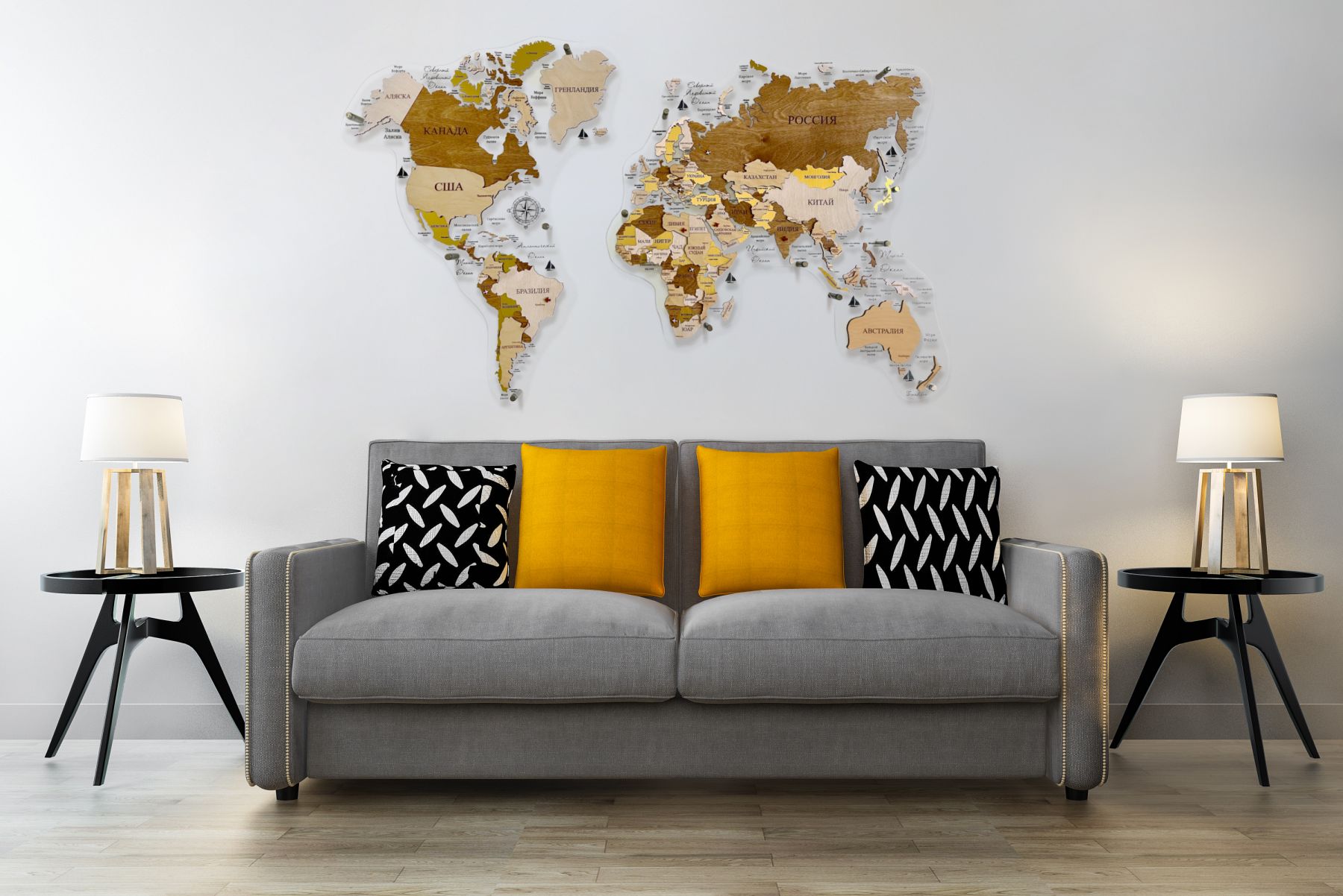 Такая карта станет отличным подарком любителю путешествий, украсит детскую комнату и поможет интереснее познавать мир, станет стильным акцентом офисного помещения.