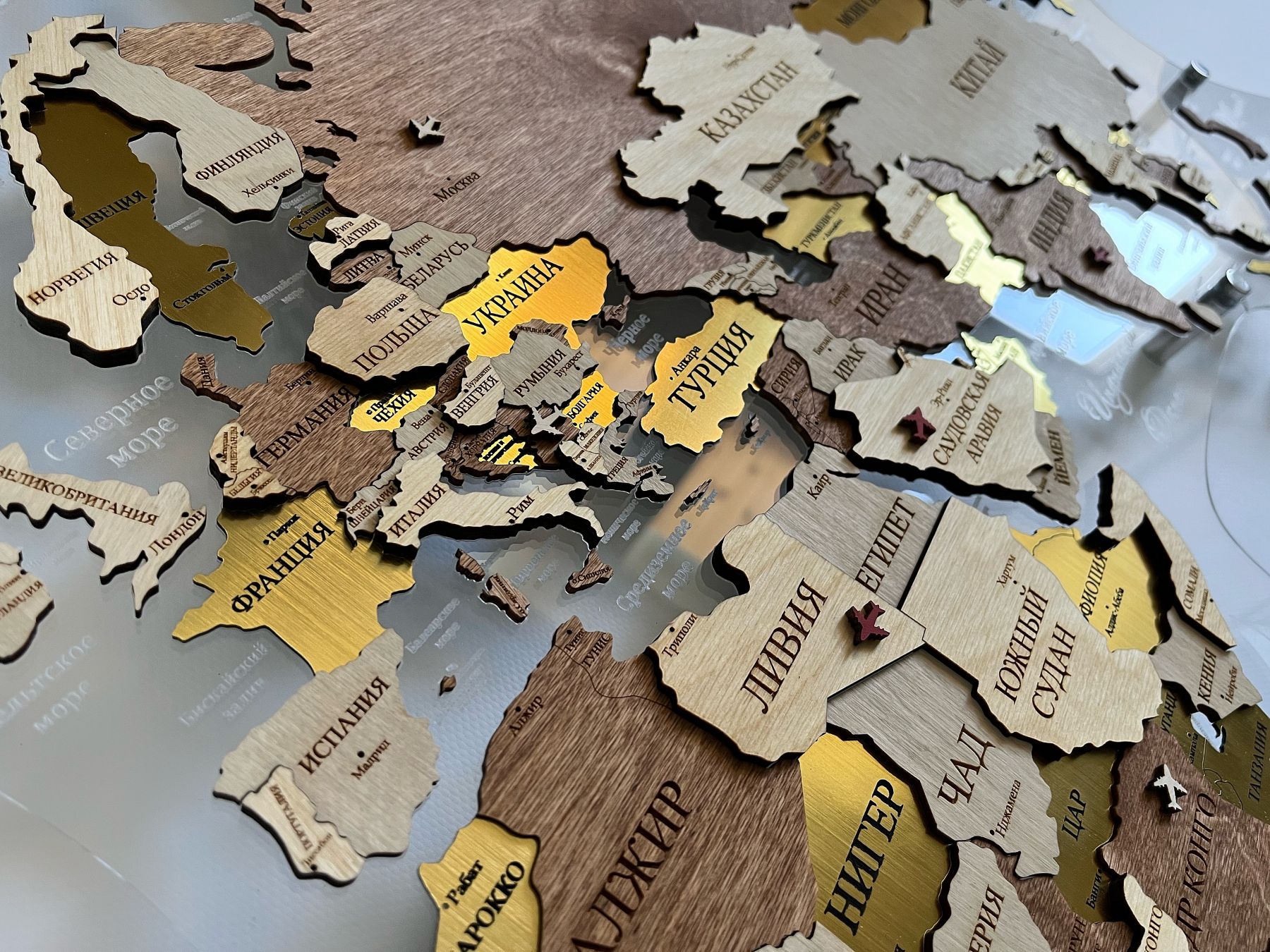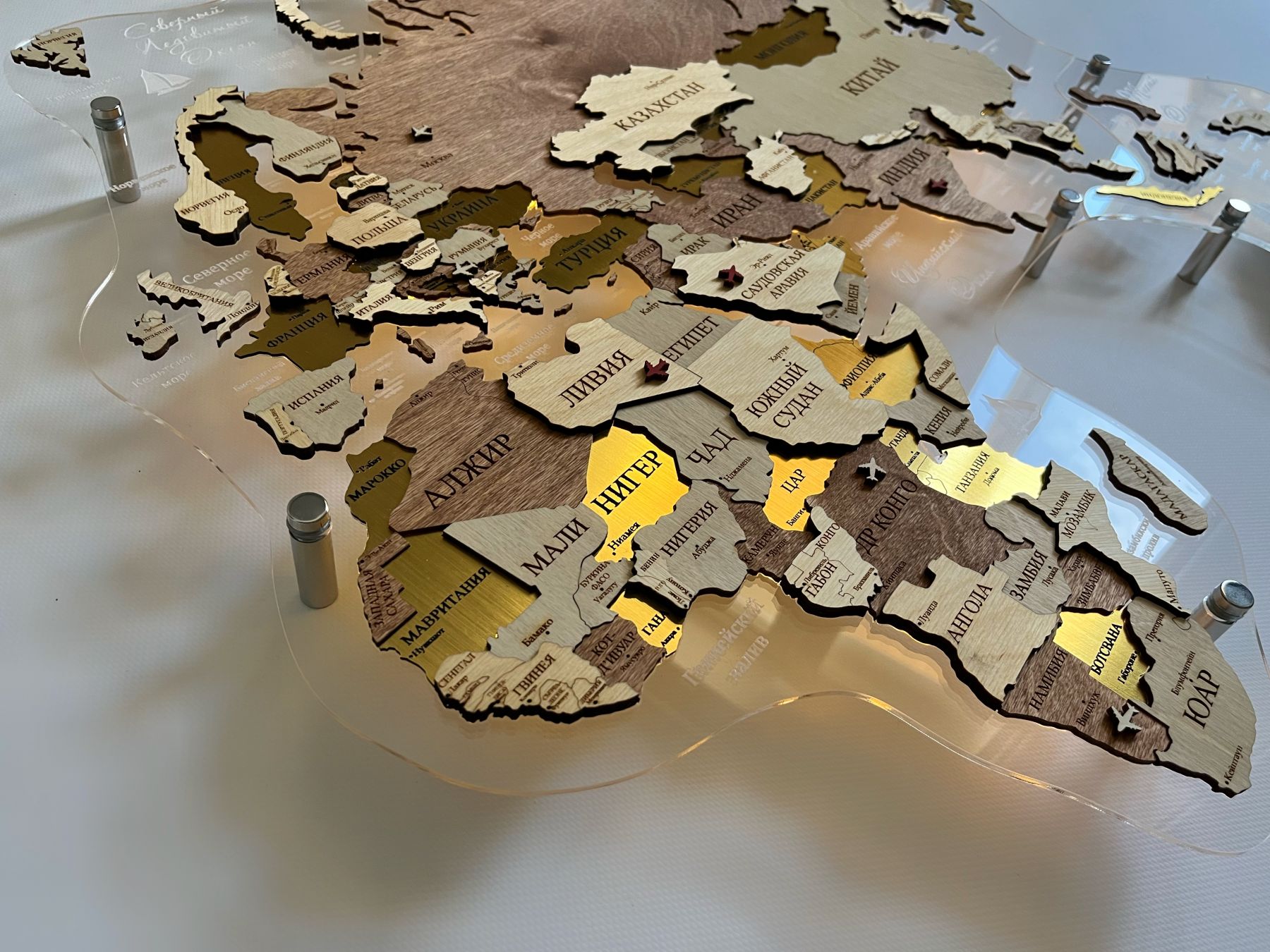 Цвет "Абу-Даби", Многоуровневая карта мира из дерева