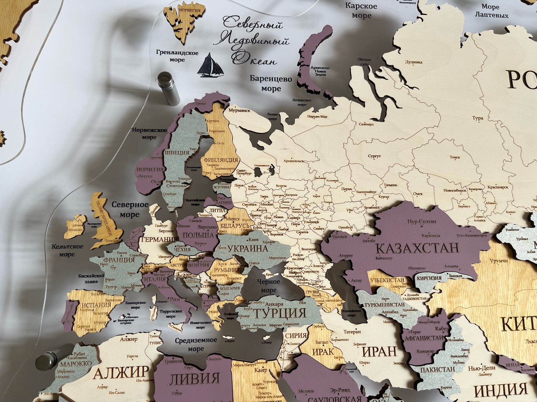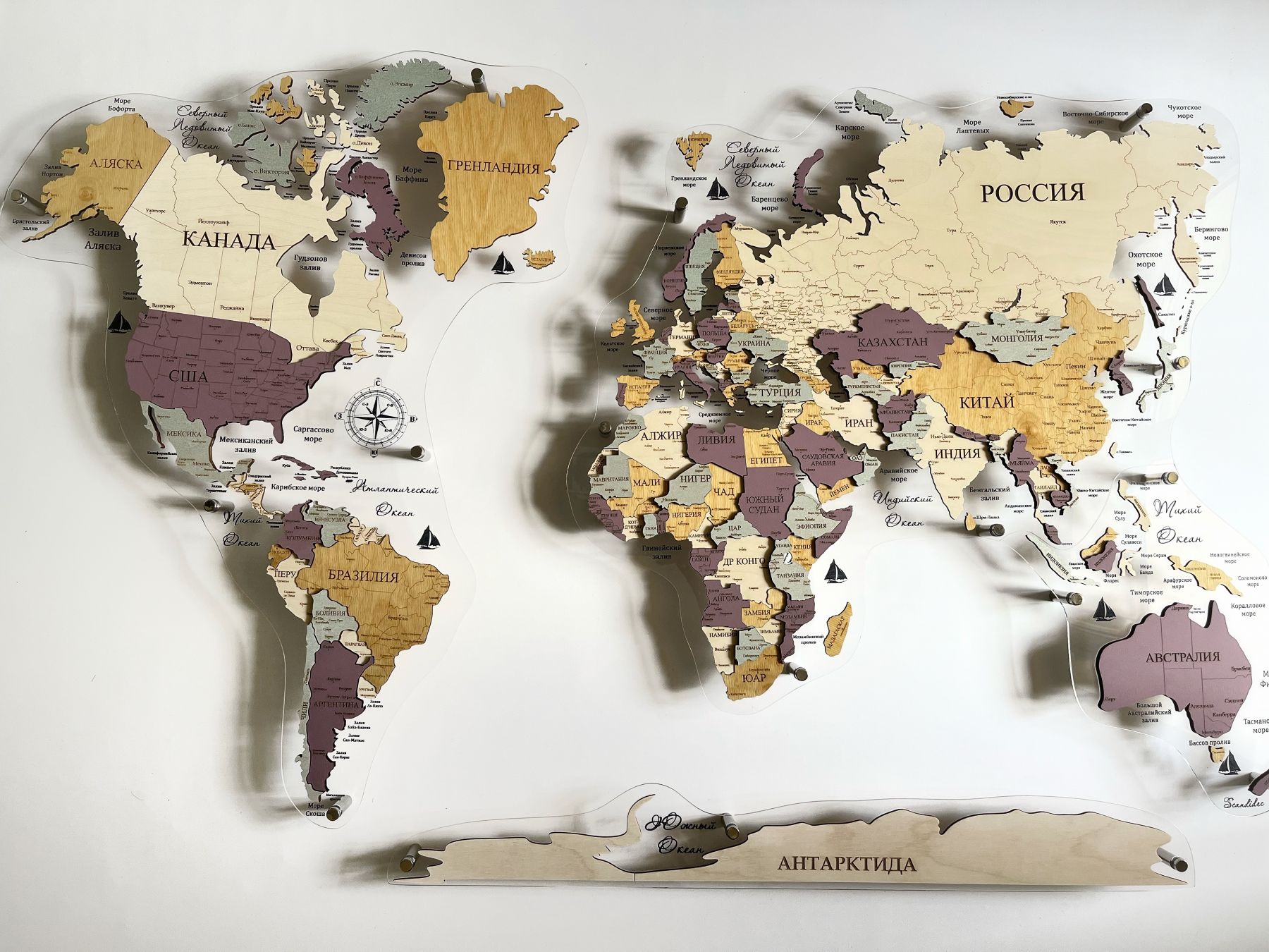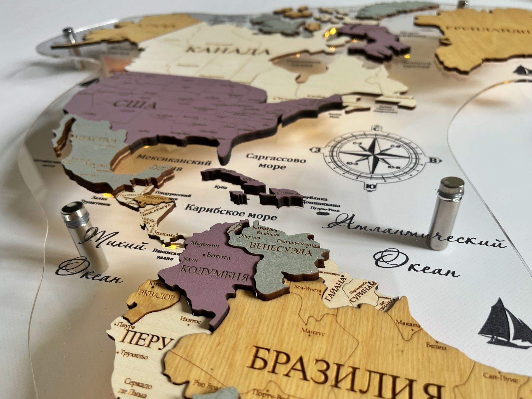 Цвет "Амстердам", Многоуровневая карта мира из дерева