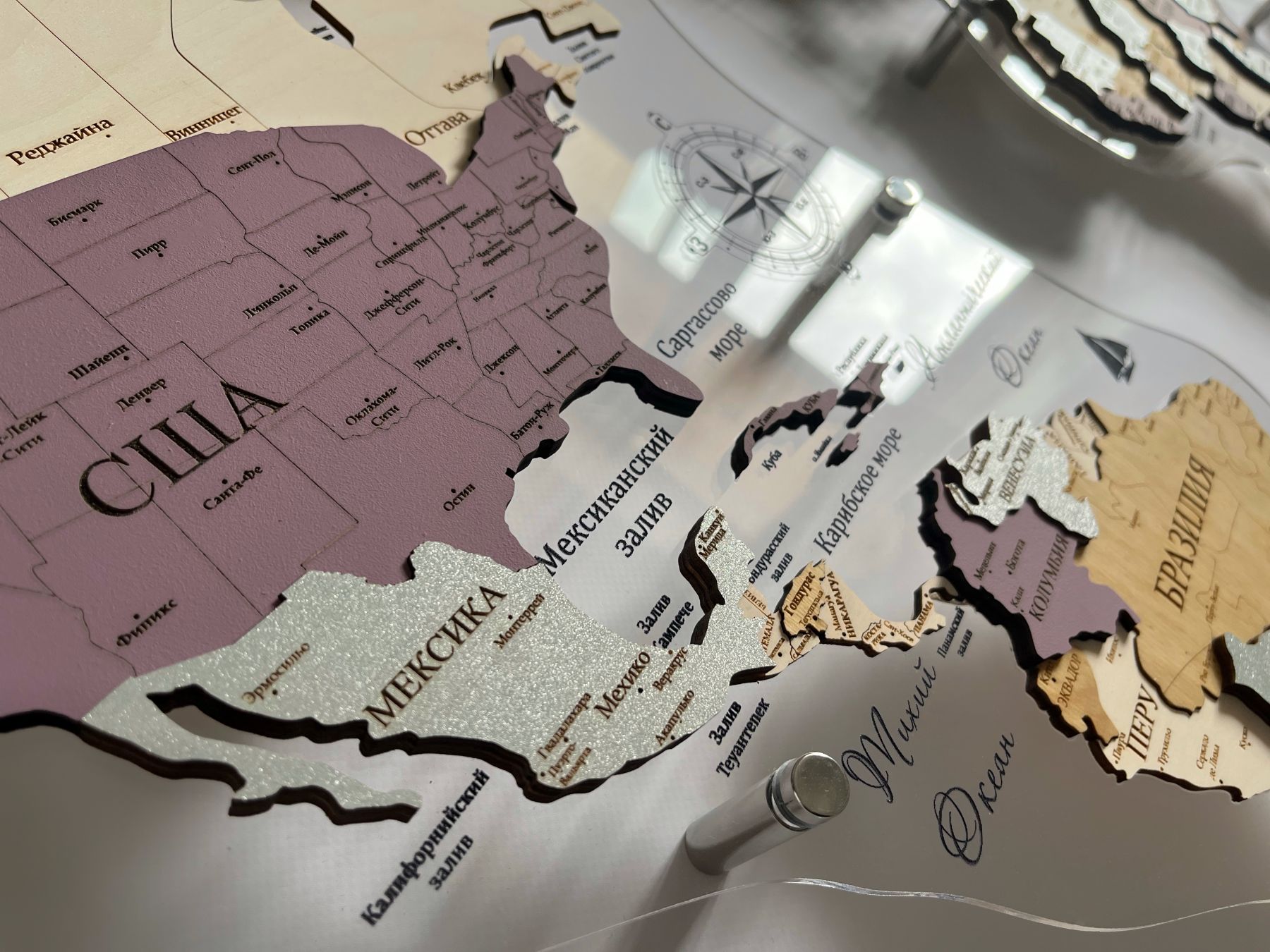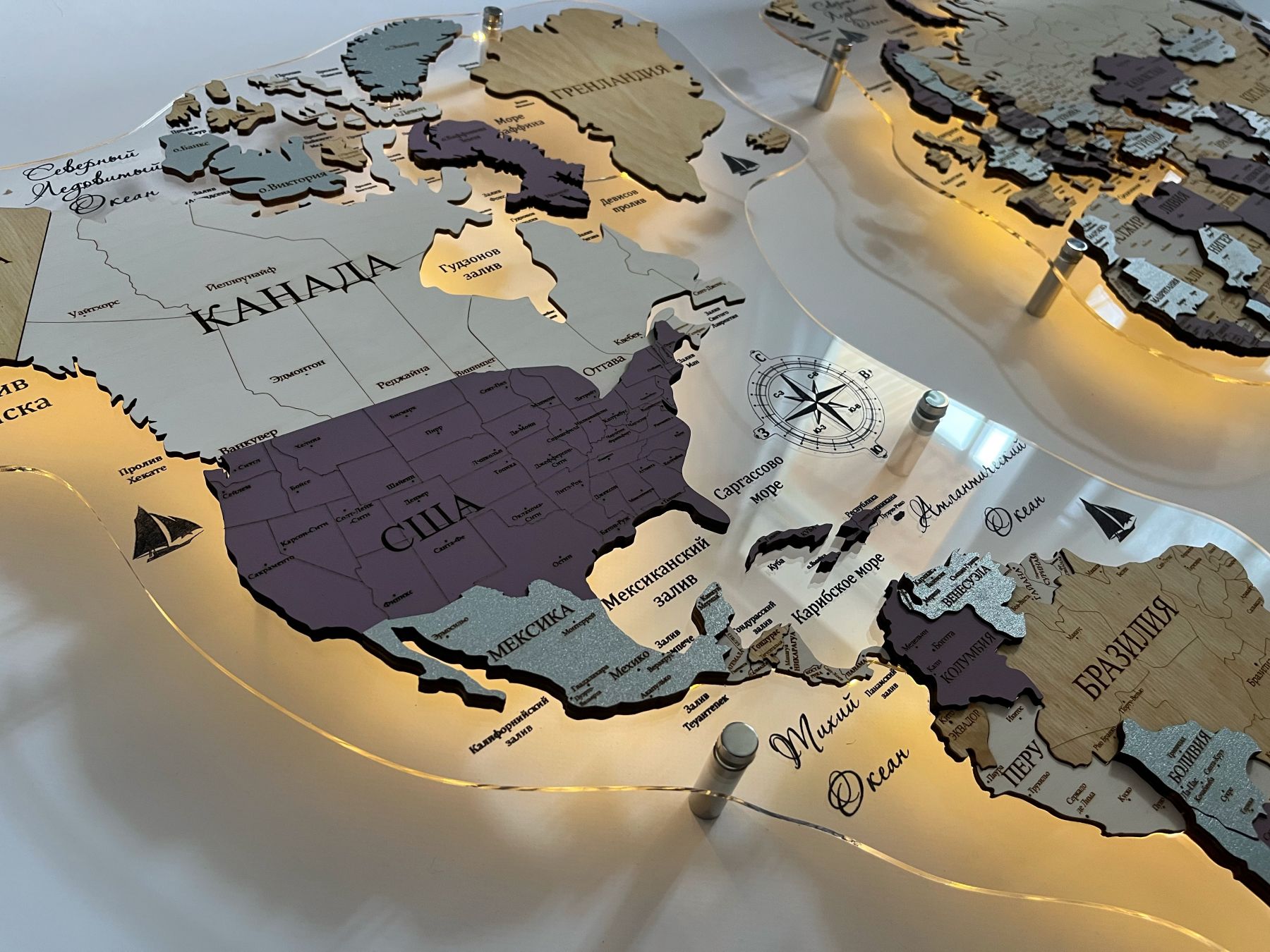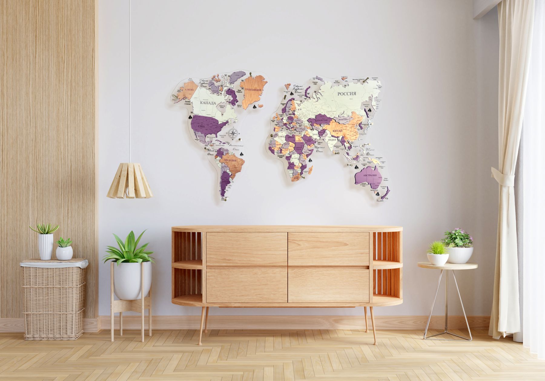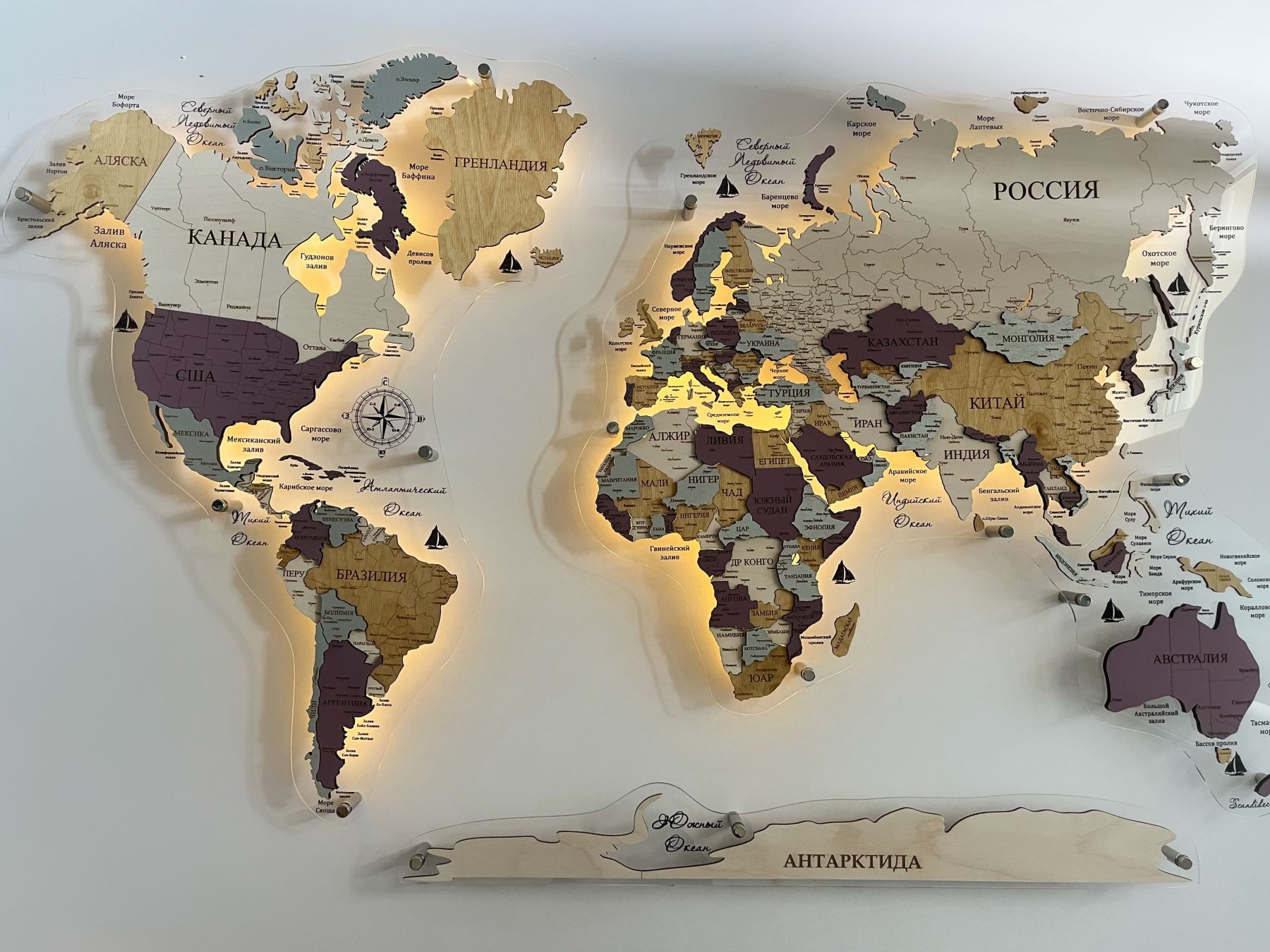 Цвет "Амстердам", Многоуровневая карта мира из дерева