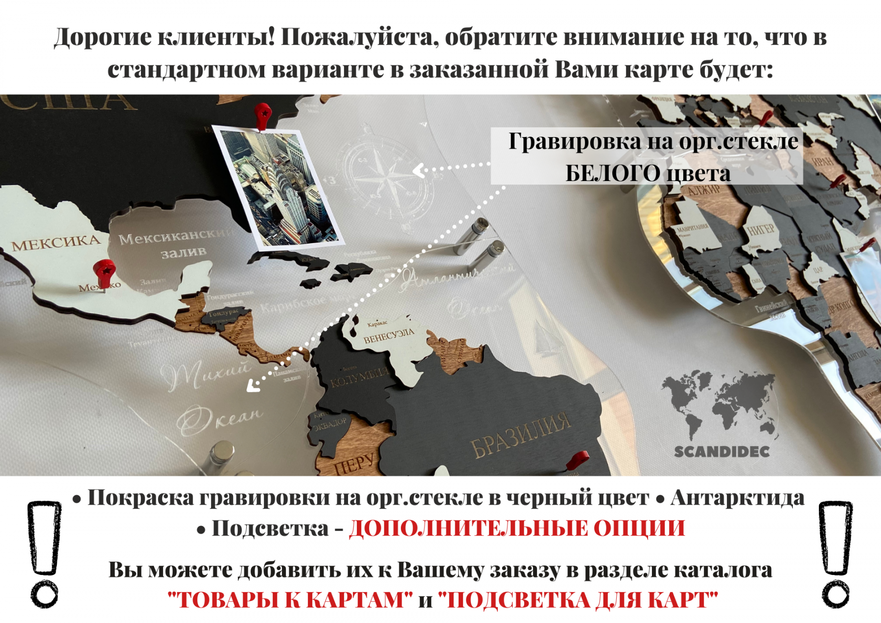 Пожалуйста, обратите внимание, что в карте на фото добавлена доп.опция - "Антарктида". Вы можете найти доп.опции в разделе каталога "Товары к картам".