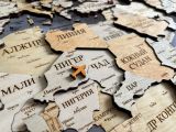 - деревянная карта мира - 1 шт (карта состоит из 5 континентов и отдельных островов);