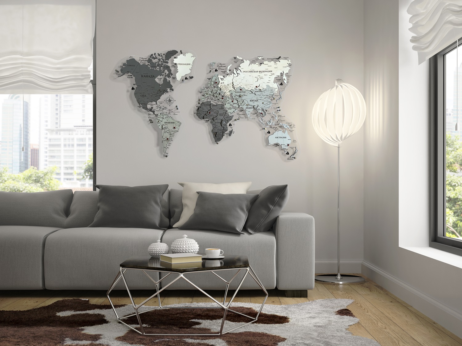 Такая карта станет отличным подарком любителю путешествий, украсит детскую комнату и поможет интереснее познавать мир, станет стильным акцентом офисного помещения.