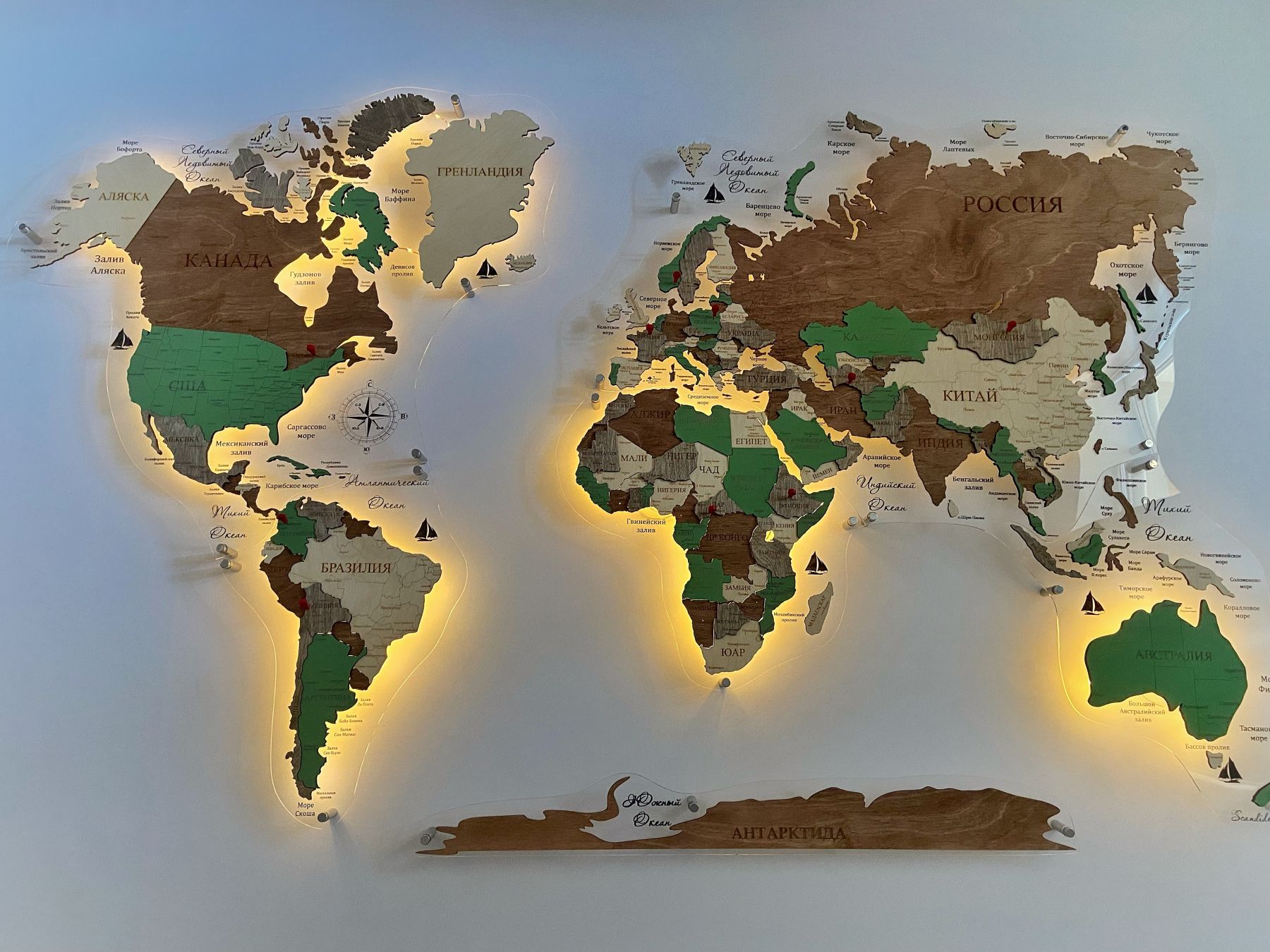Такая карта станет отличным подарком любителю путешествий, украсит детскую комнату и поможет интереснее познавать мир, станет стильным акцентом офисного помещения.