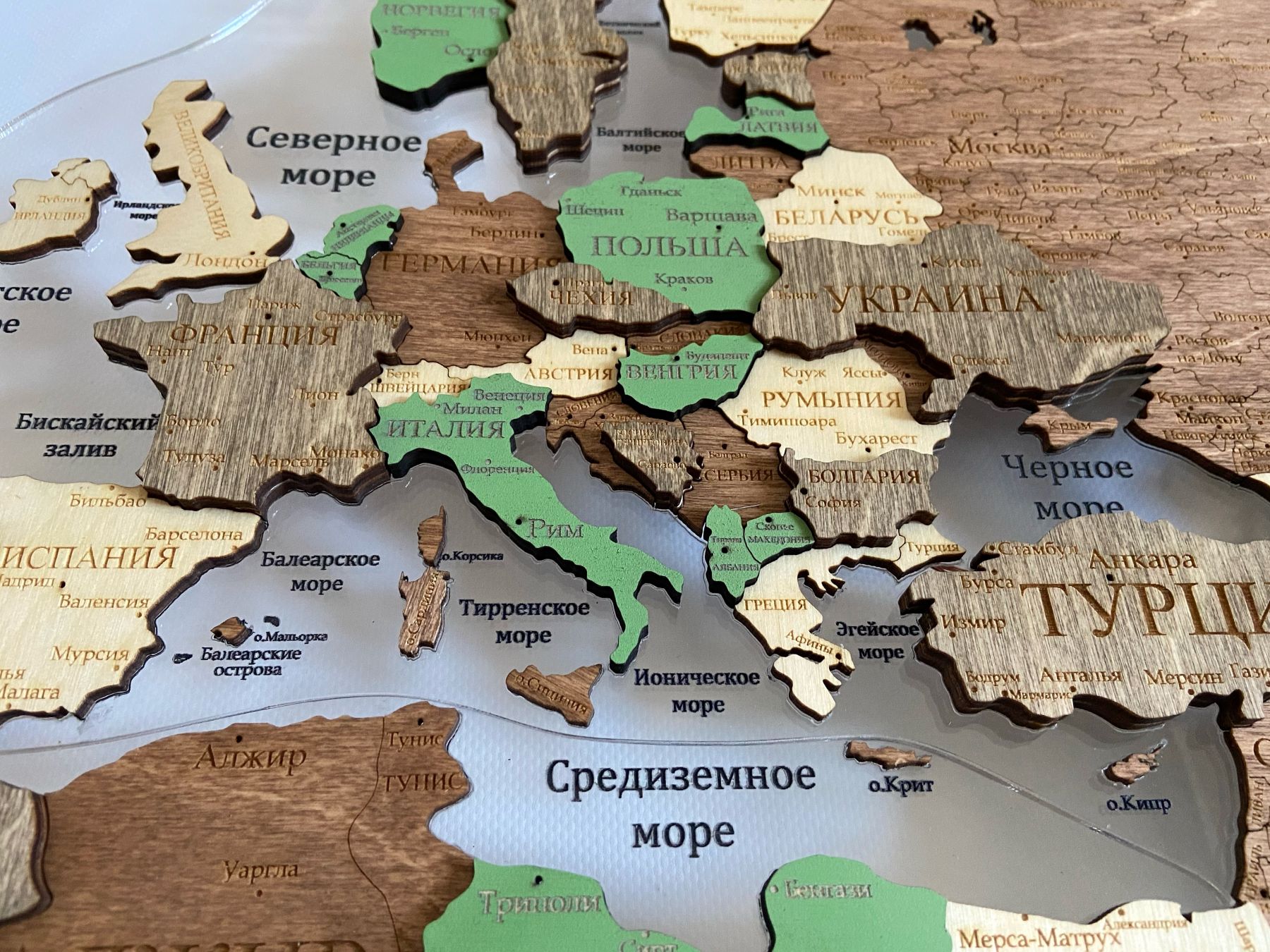 Все детали карты вырезаются на высокоточном лазерном оборудовании, что гарантирует идеальные линии и качество. Затем детали окрашиваются, тщательно шлифуются несколько раз и склеиваются вручную, бережно, с вниманием к деталям.