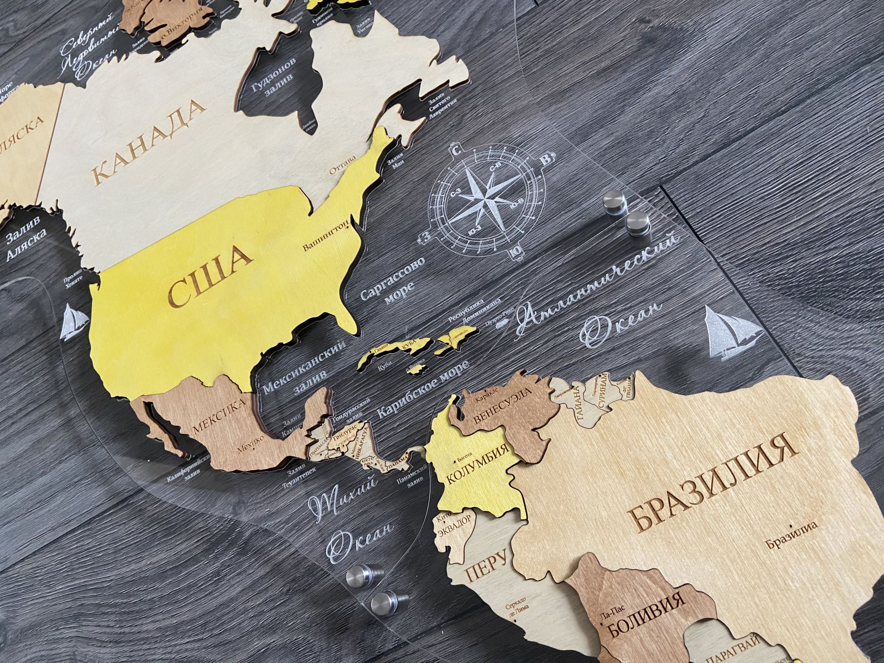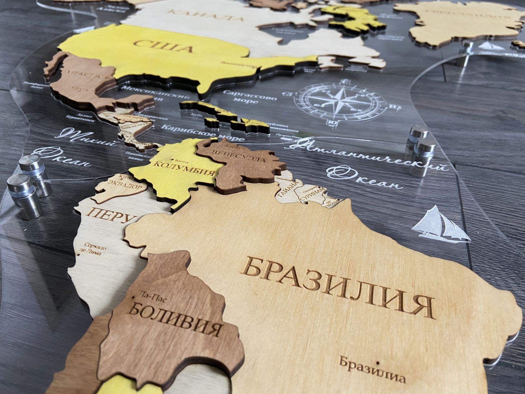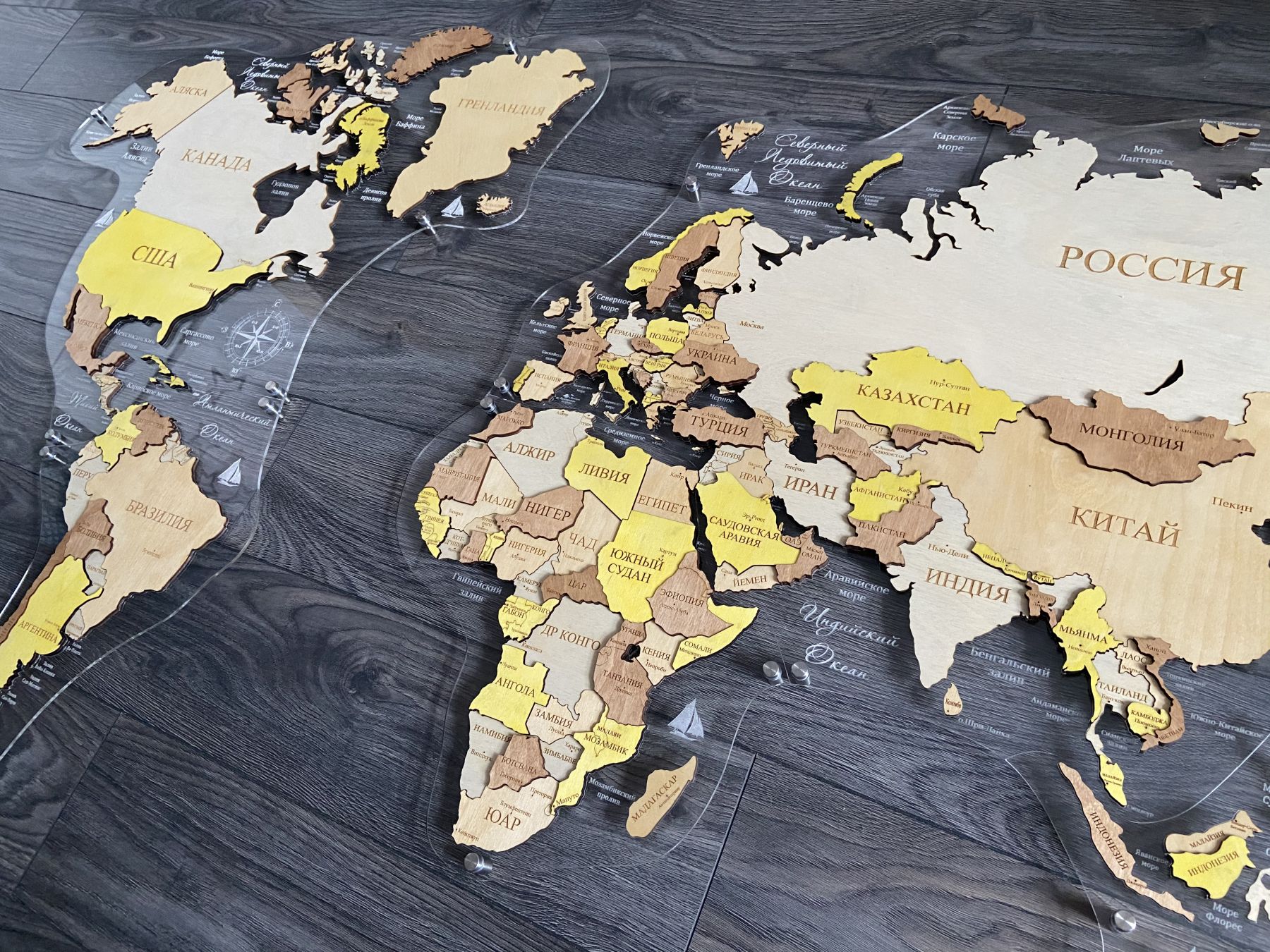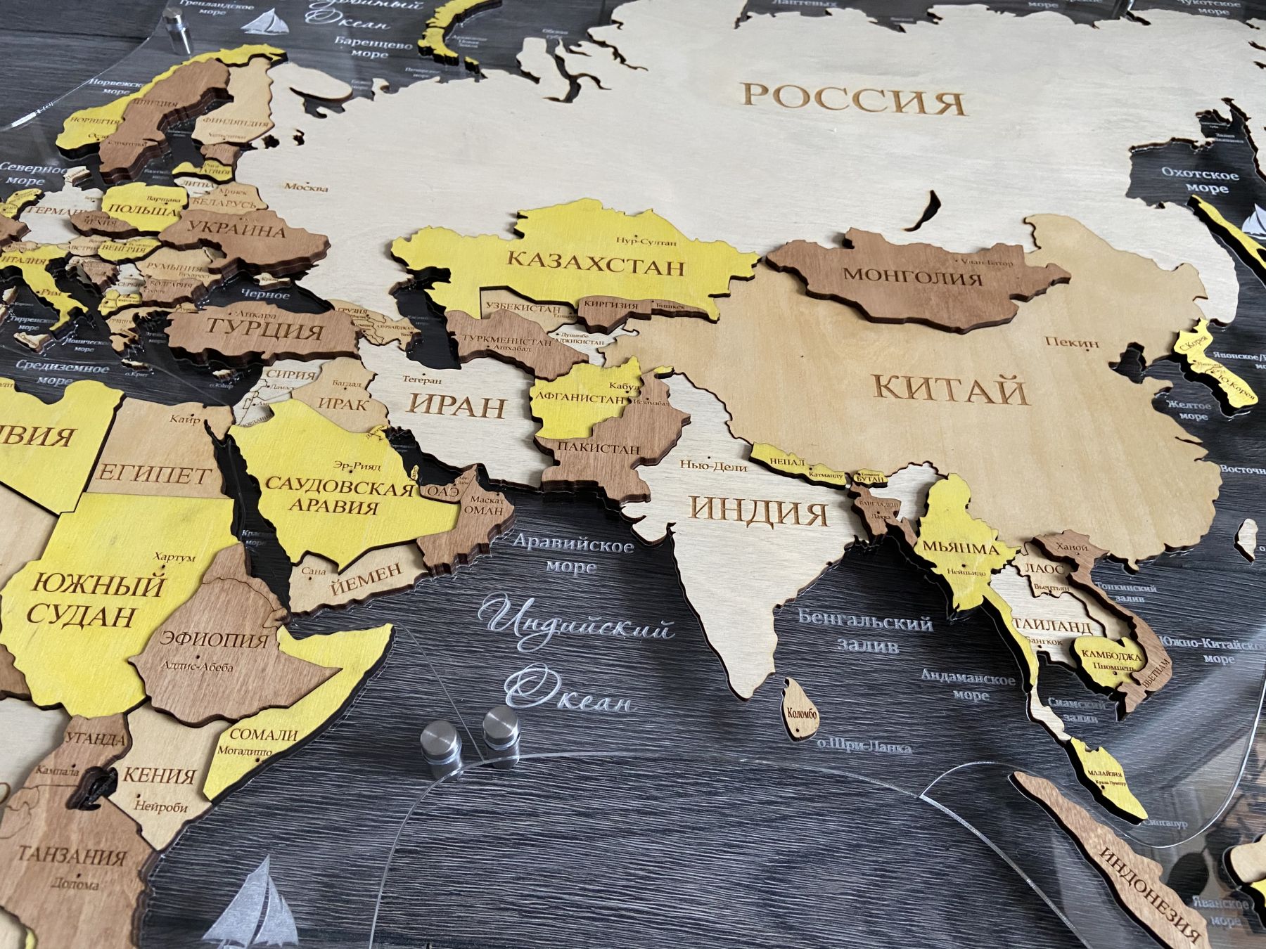 Цвет "Кальяри", Многоуровневая карта мира из дерева