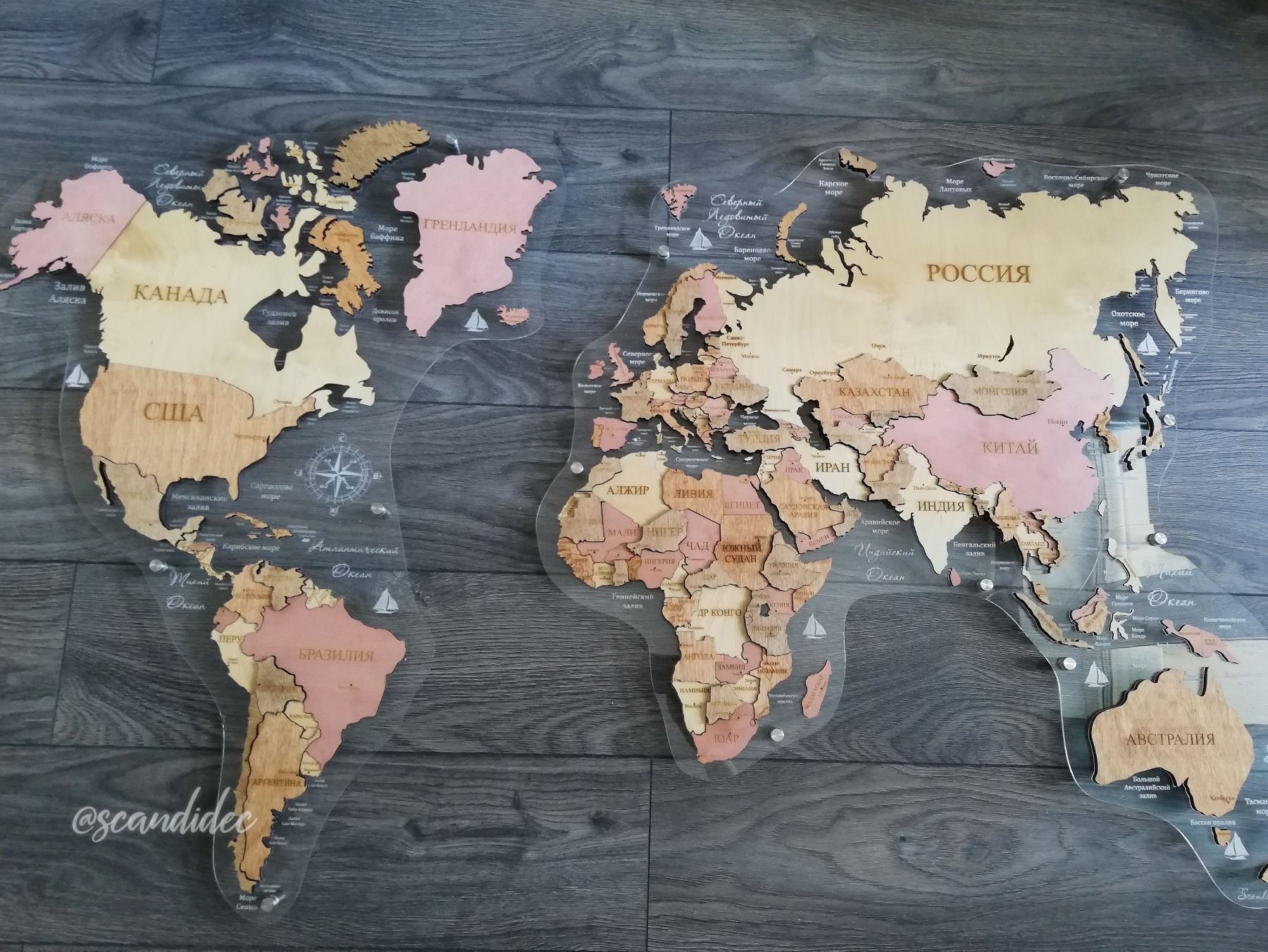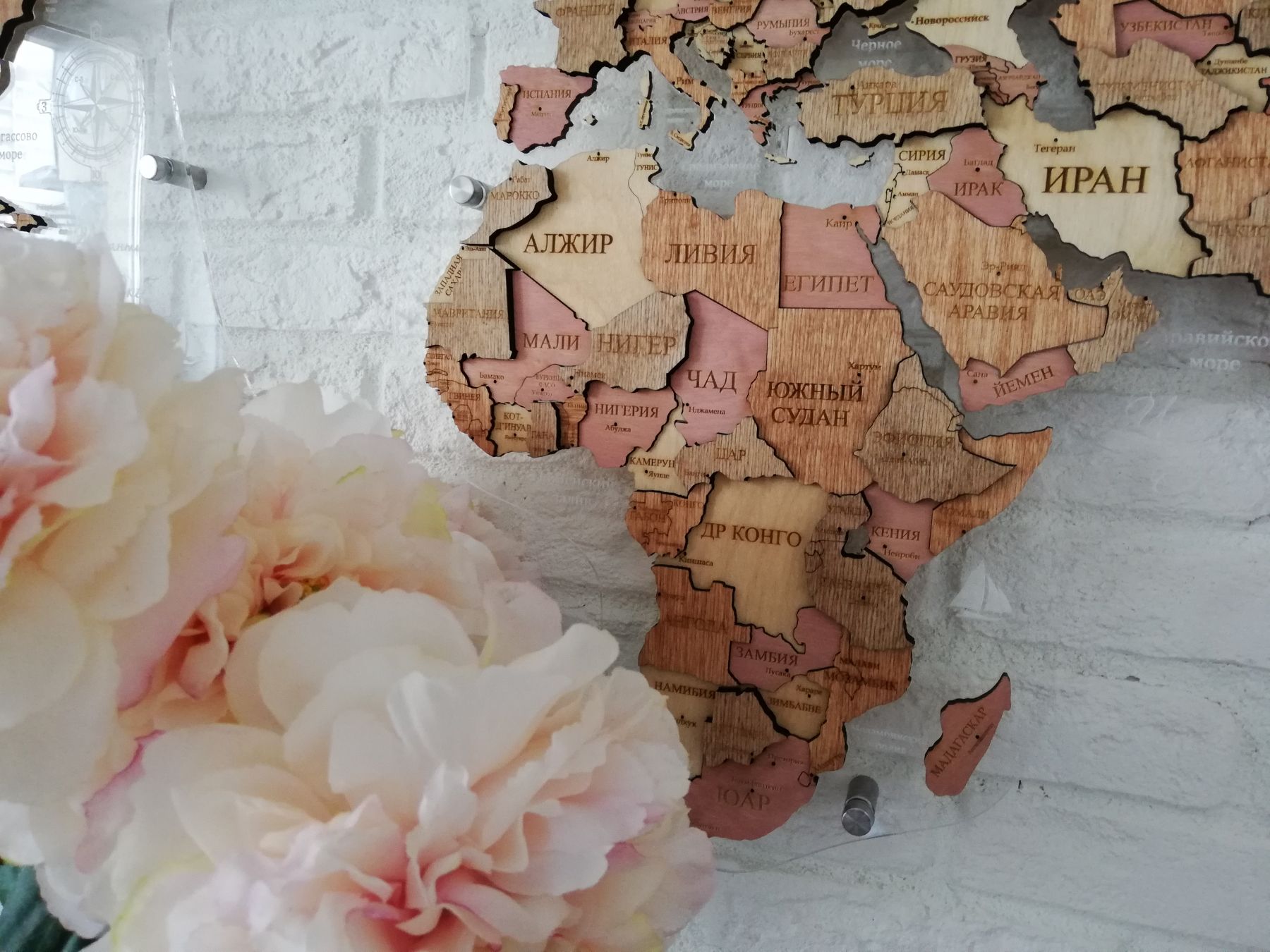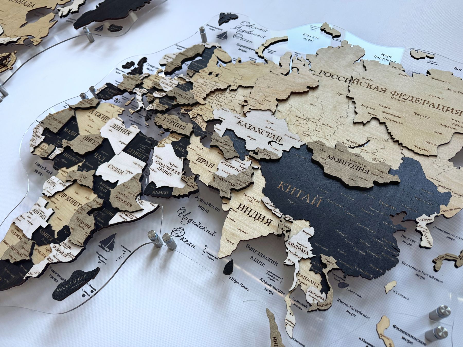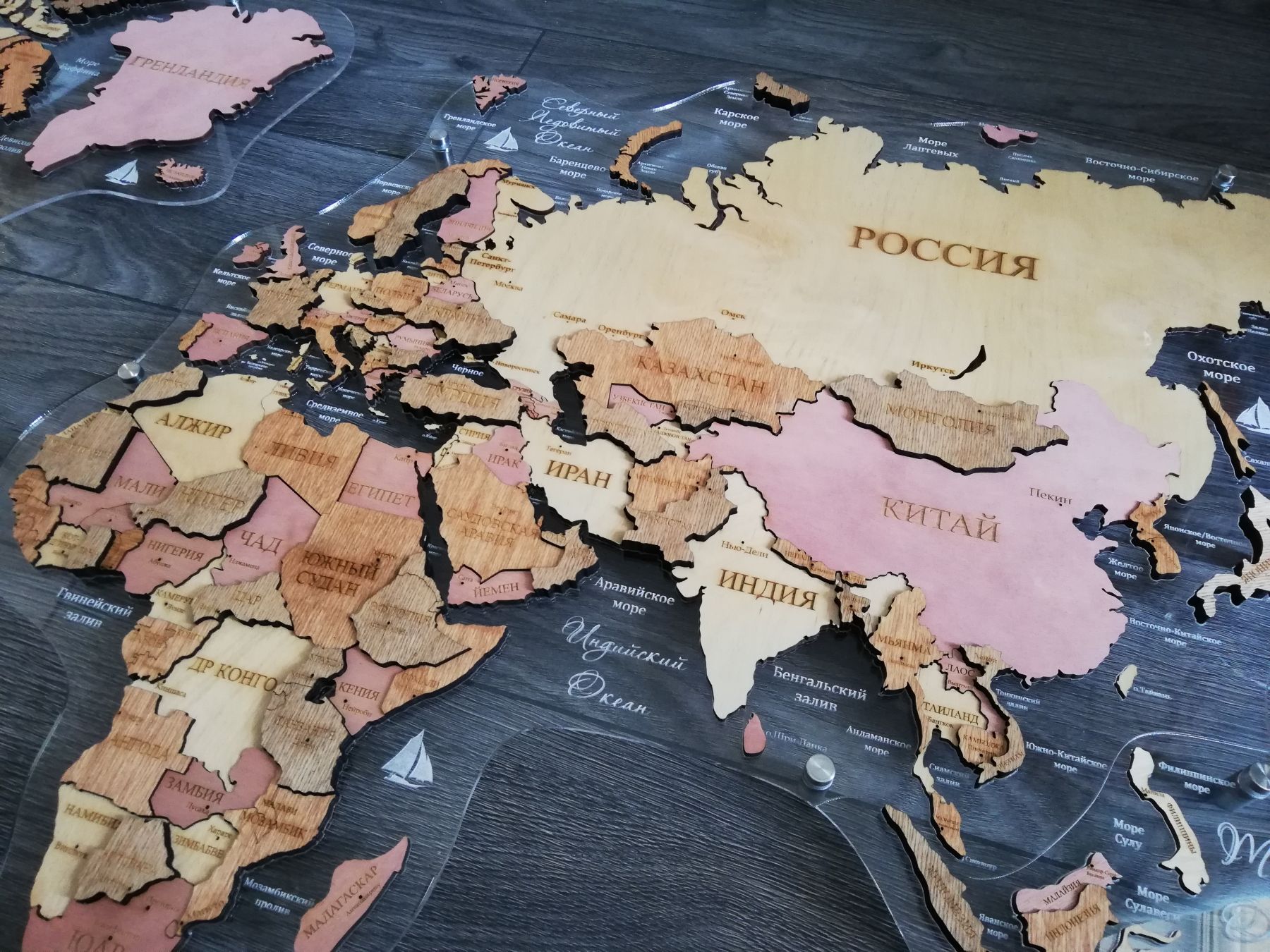 Цвет "Касабланка", Многоуровневая карта мира из дерева