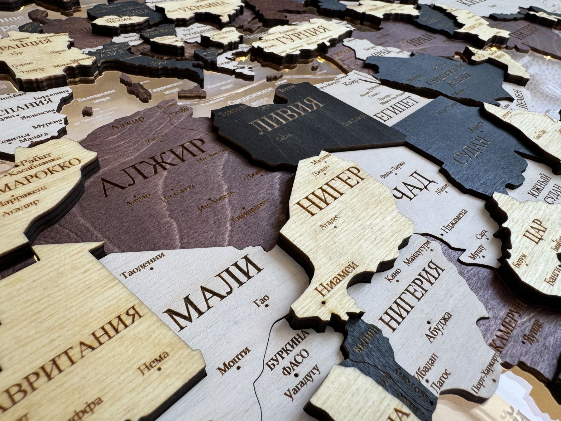 Цвет "Мюнхен", Многоуровневая карта мира из дерева