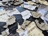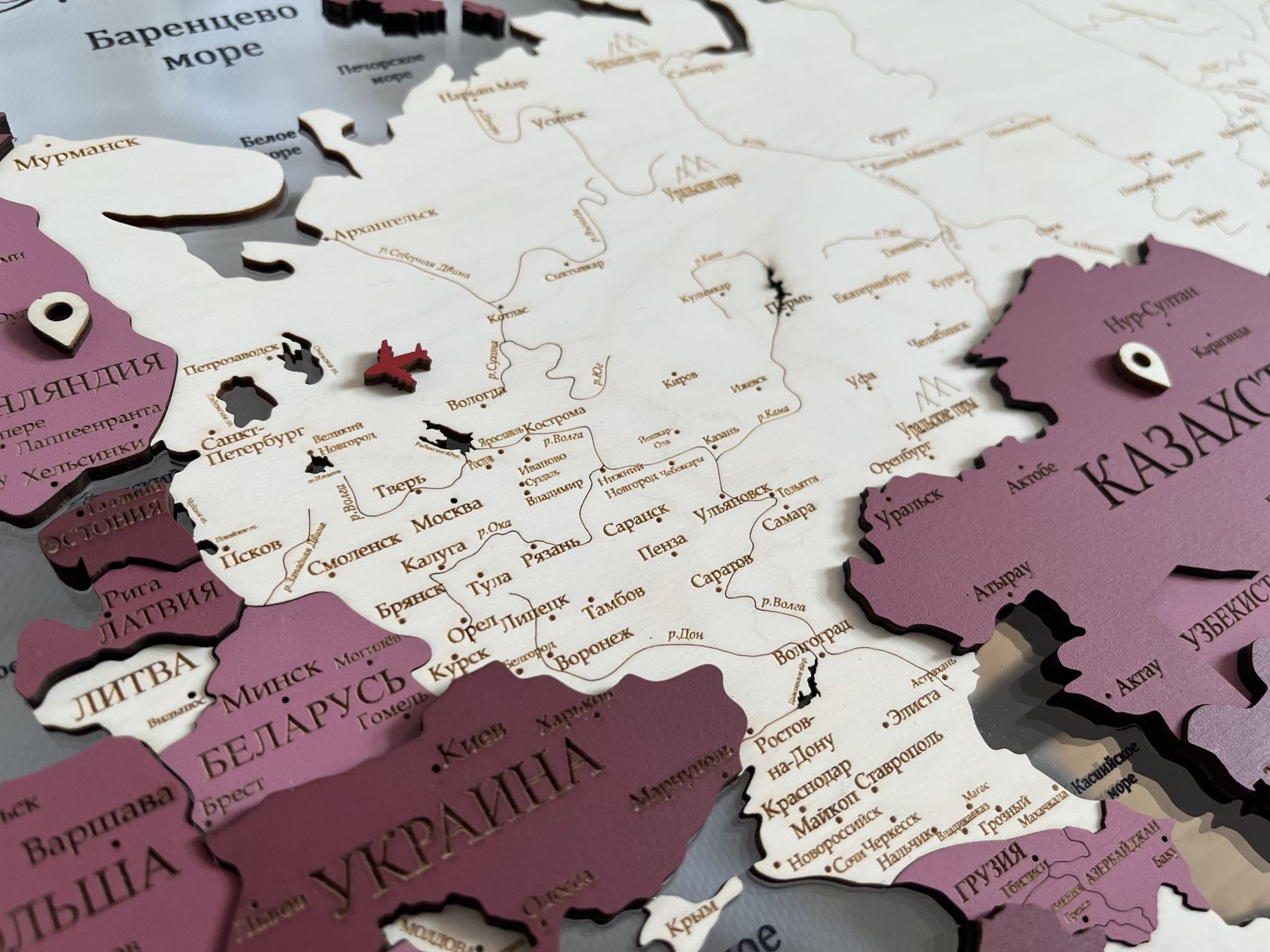 - Материал карты - натуральный берёзовый шпон разной толщины, от 3 до 8 мм. Покрытие - экологичная морилка на водной основе.