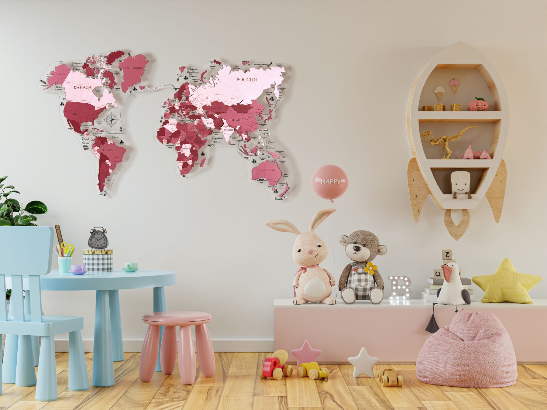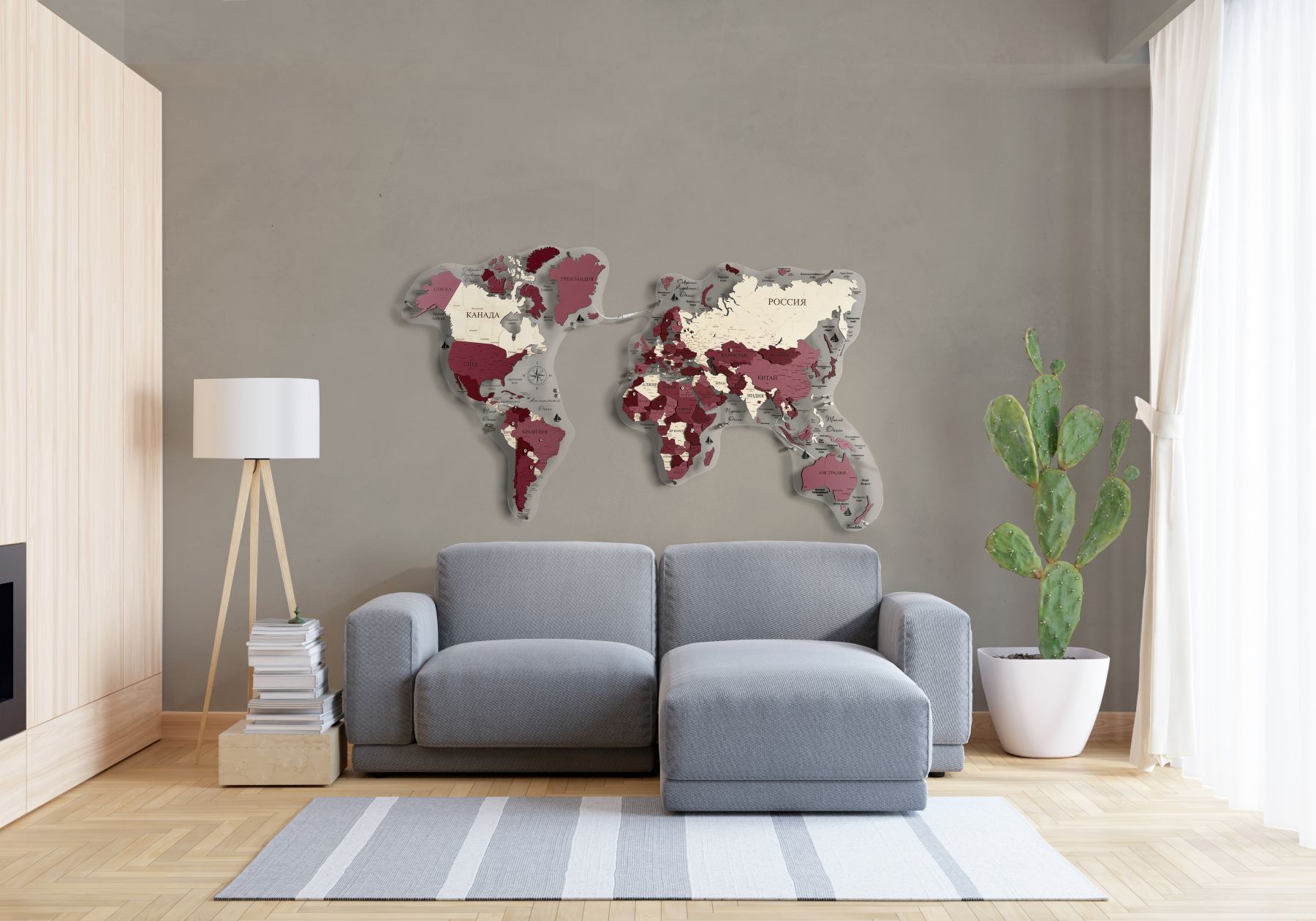 Такая карта станет отличным подарком любителю путешествий, украсит детскую комнату и поможет интереснее познавать мир, станет стильным акцентом офисного помещения.