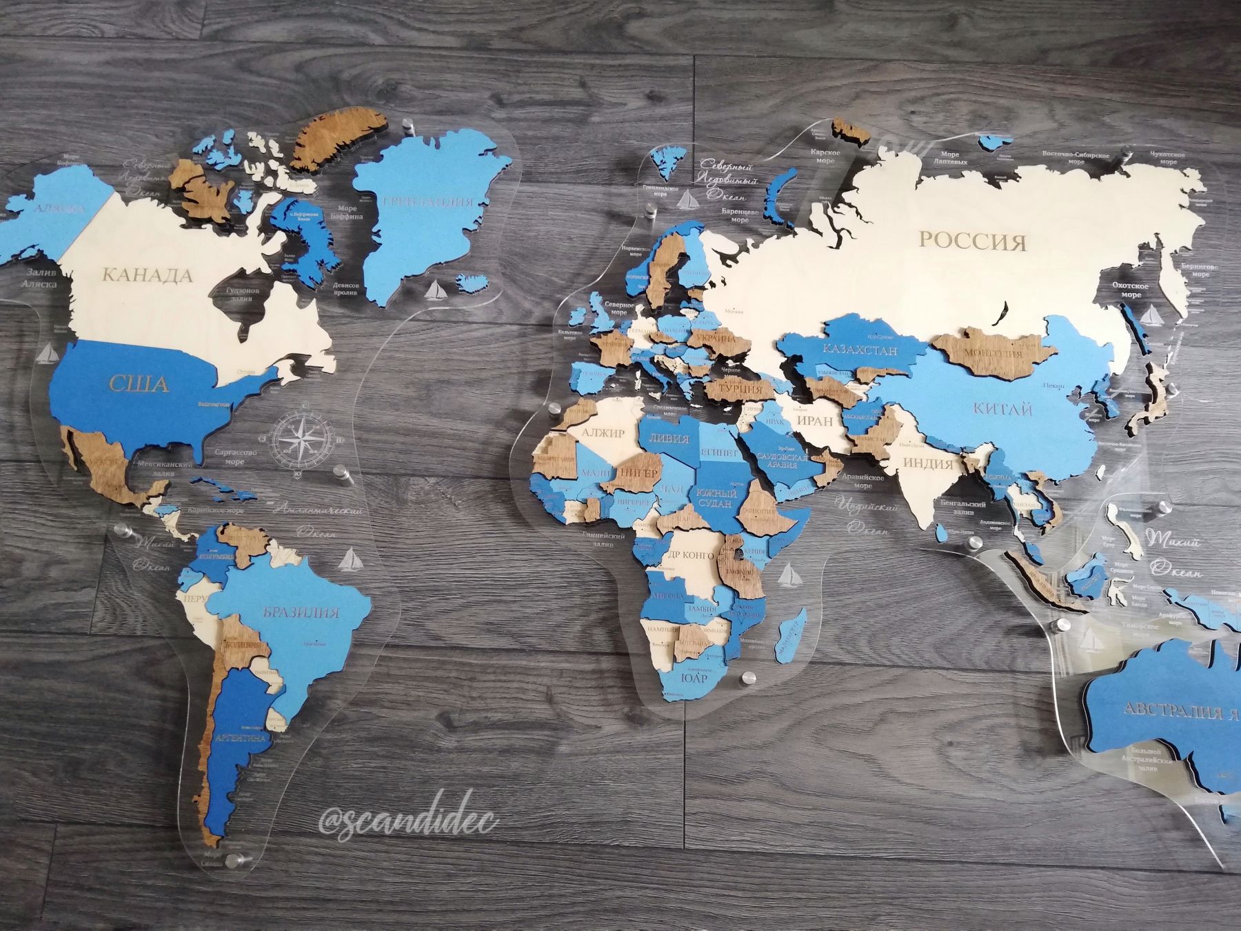 Цвет "Сиэтл", Многоуровневая карта мира из дерева