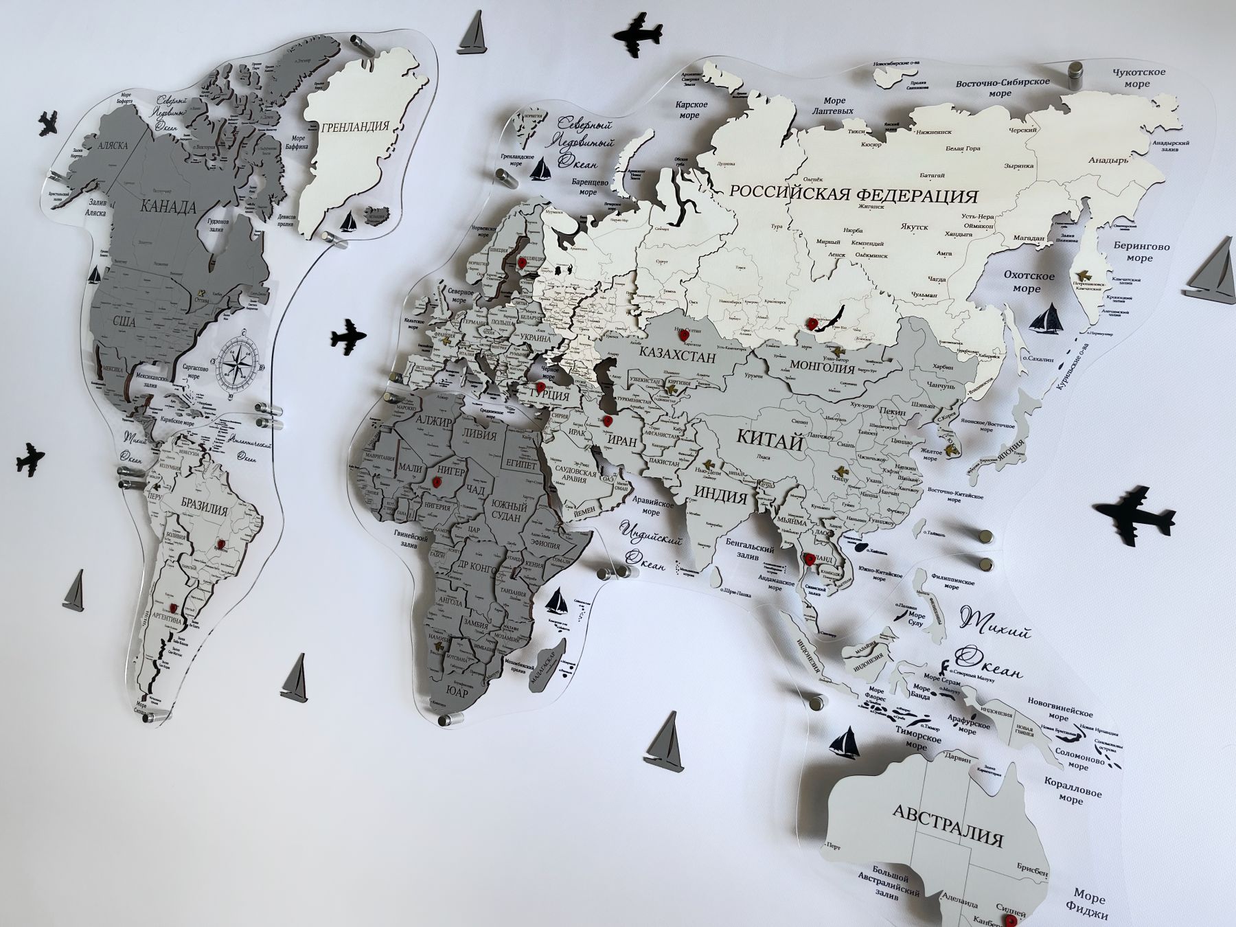 Такая карта станет отличным подарком любителю путешествий, украсит детскую комнату и поможет интереснее познавать мир, станет стильным акцентом офисного помещения.