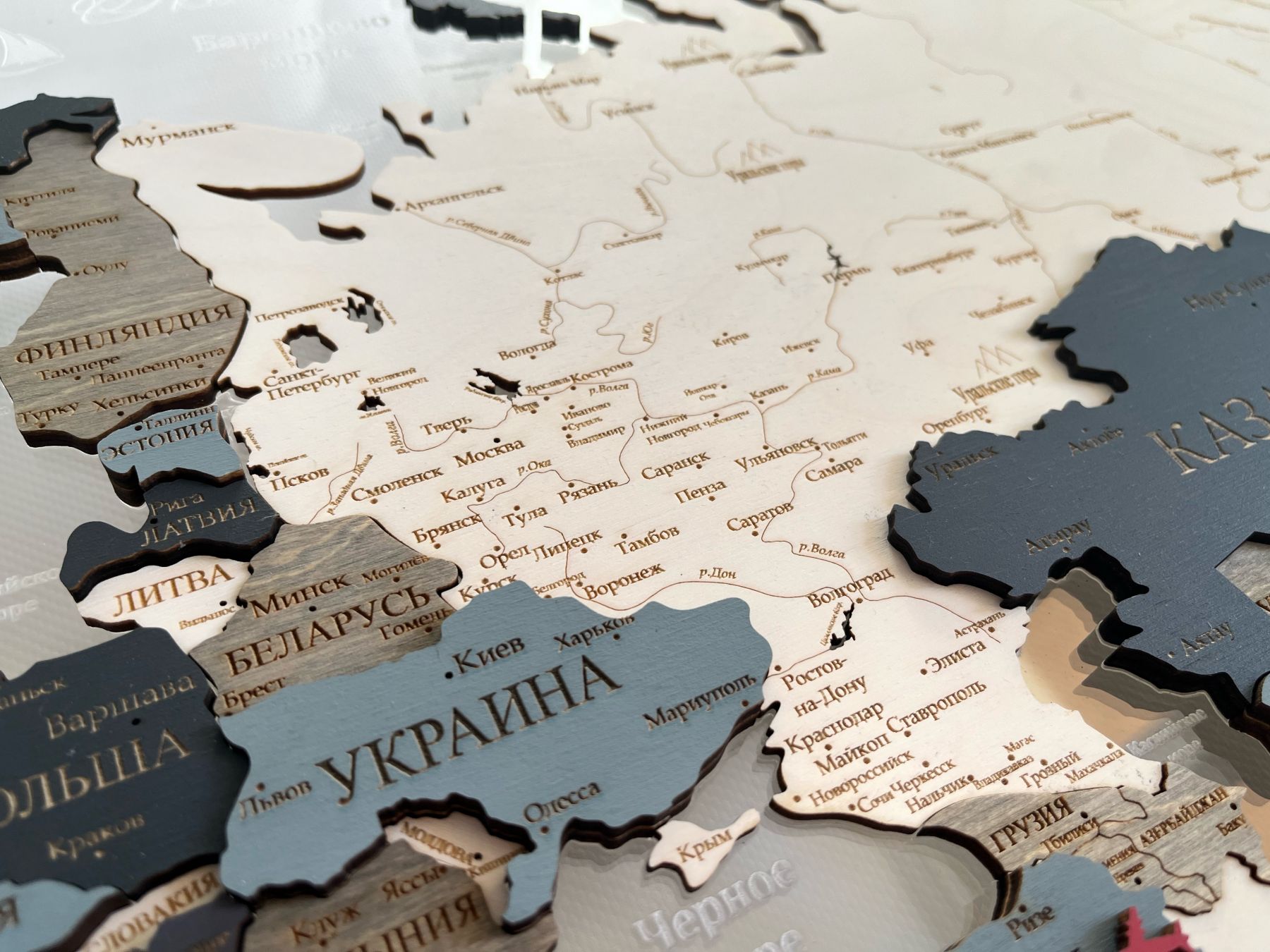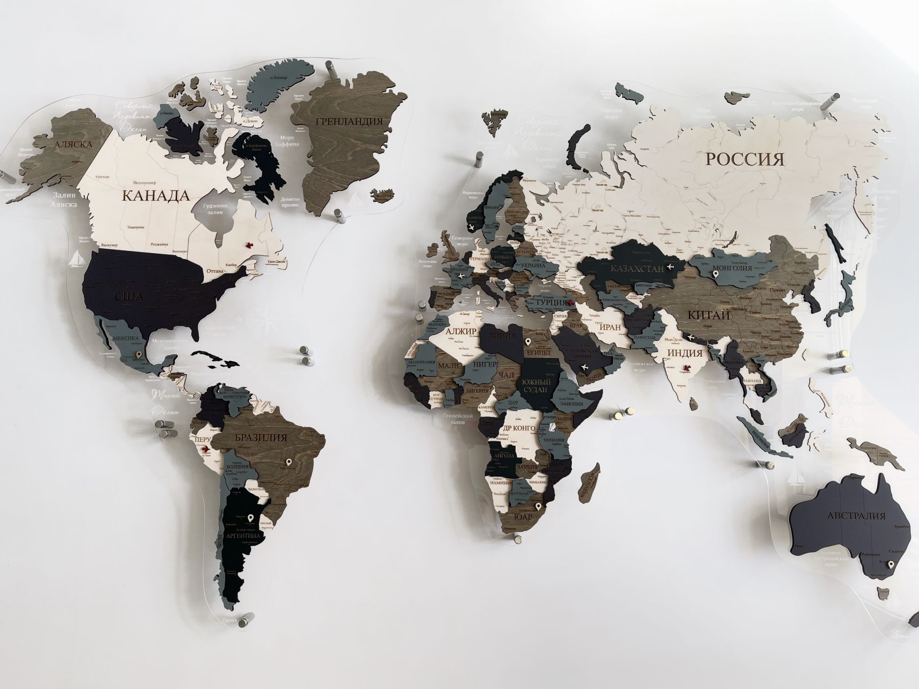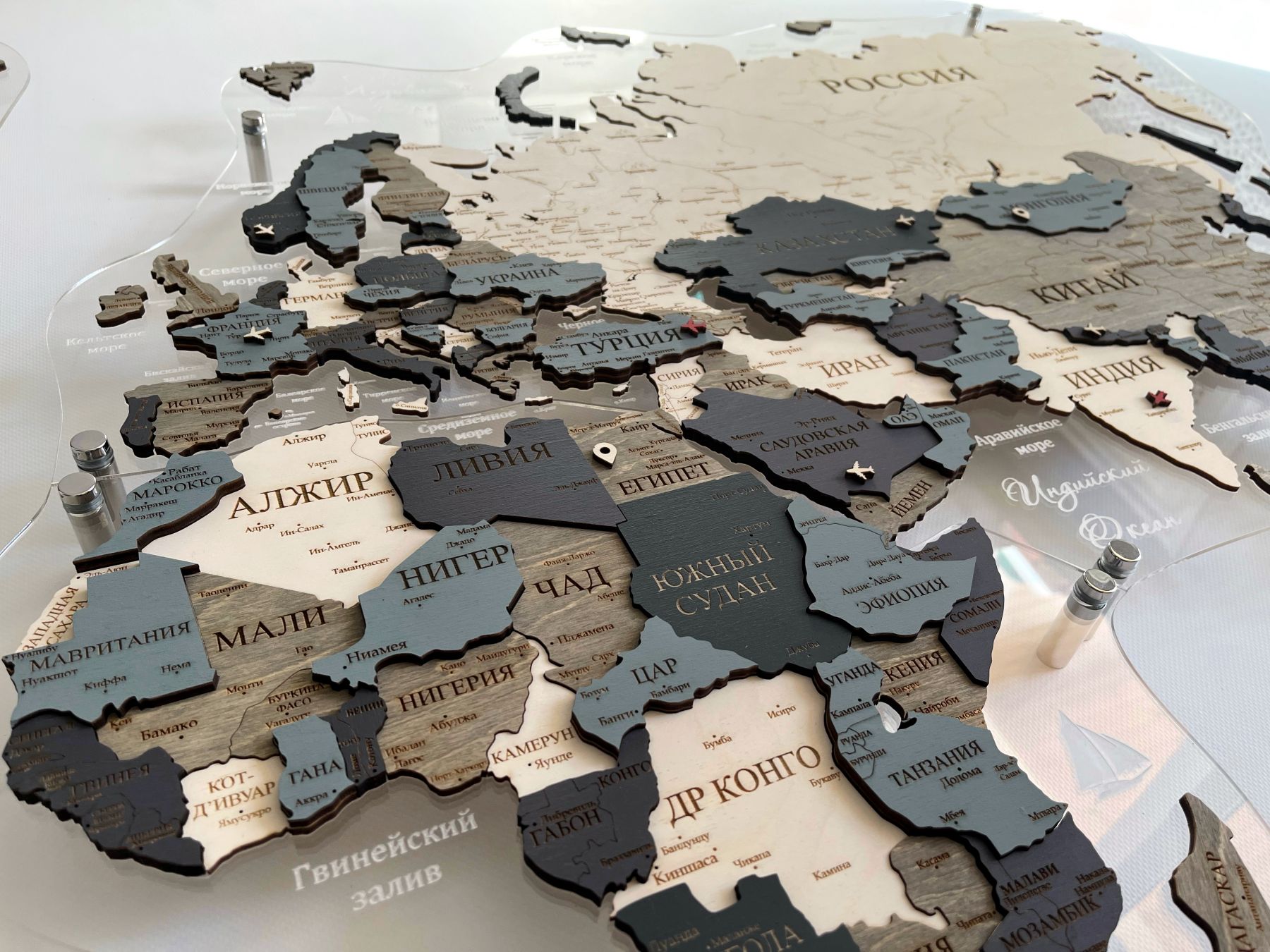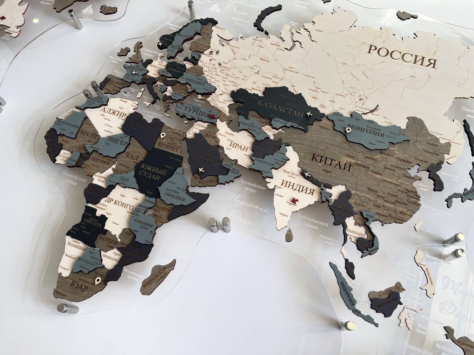 Цвет "Стокгольм", Многоуровневая карта мира из дерева