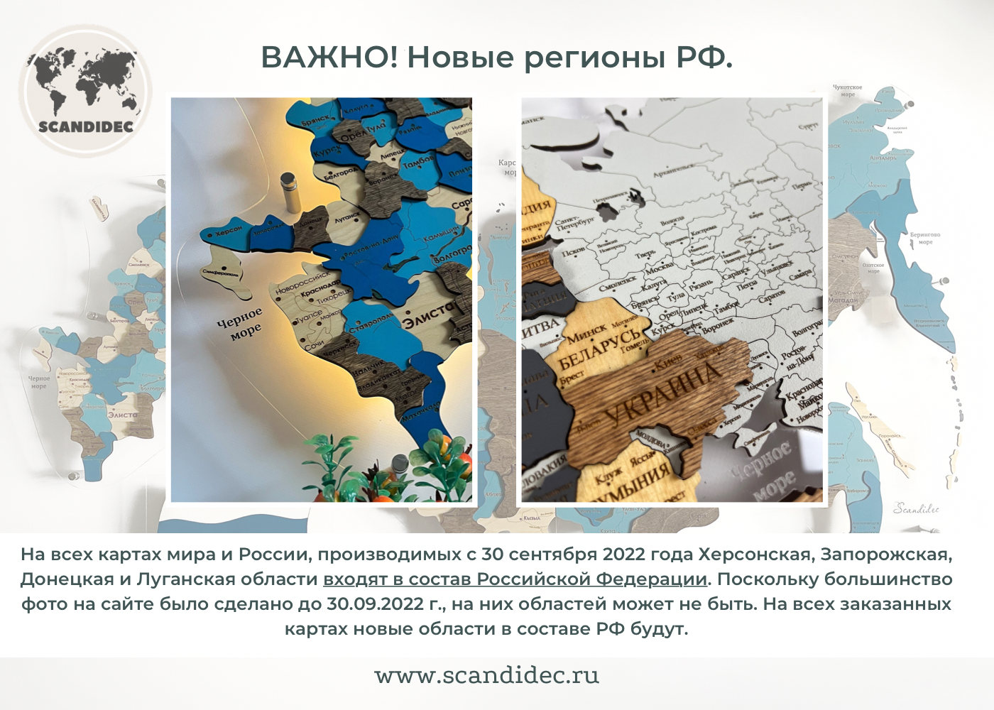 ВАЖНО: во всех картах, произведенных после 30 сентября 2022 года Херсонская, Запорожская, Донецкая и Луганская области входят в состав Российской Федерации. Поскольку многие карты на сайте фотографировались до этого момента - на фото этих регионов в составе РФ может не быть.