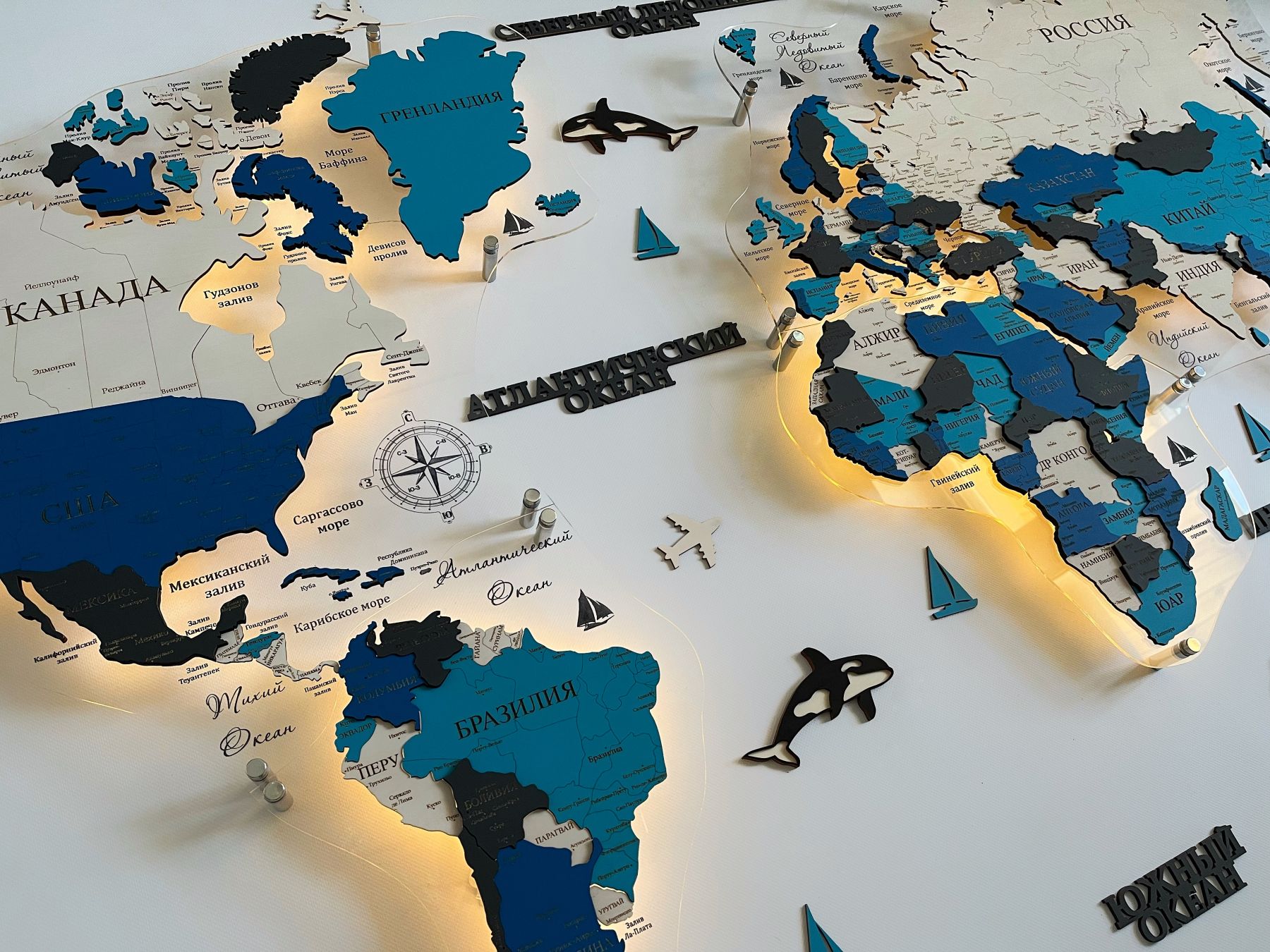 Цвет "Таллин", Многоуровневая карта мира из дерева
