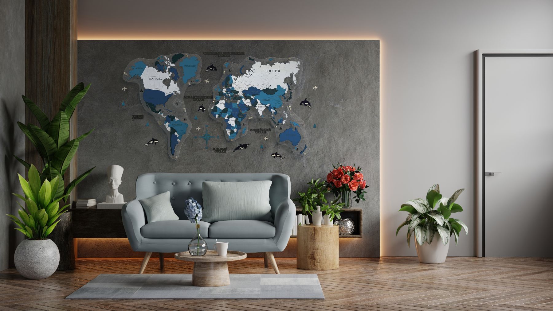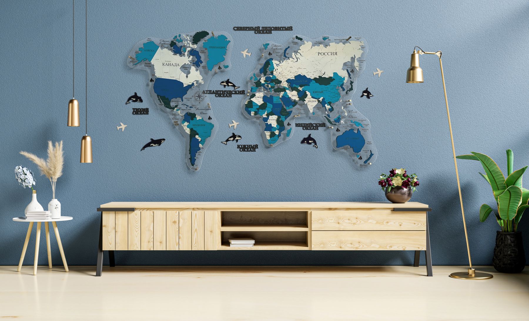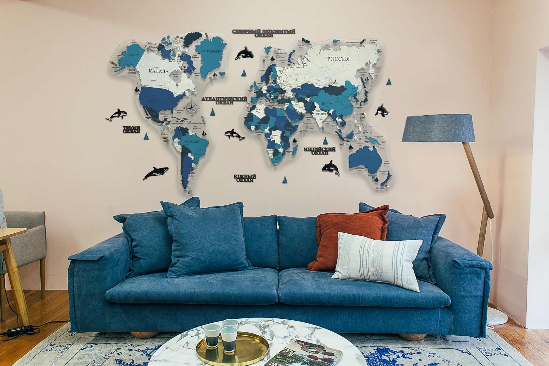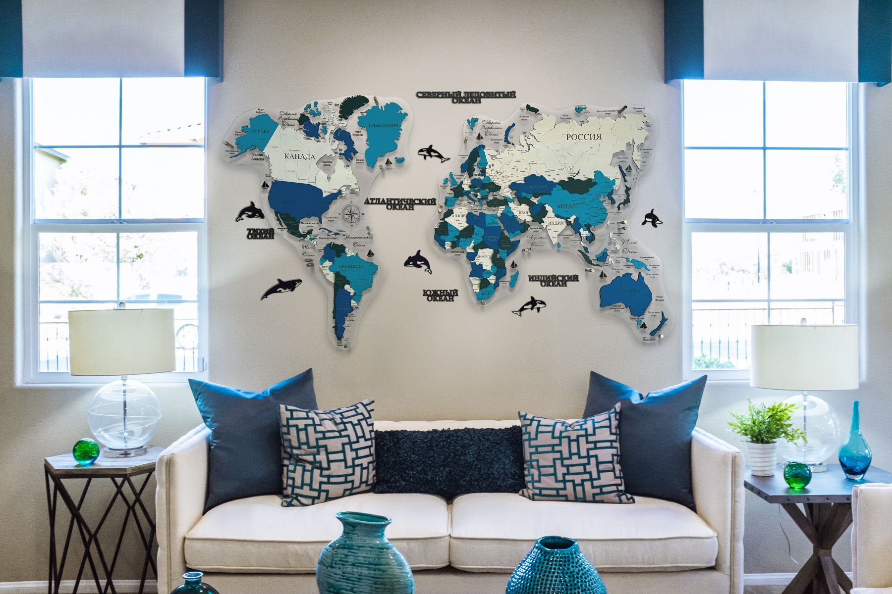 Такая карта станет отличным подарком любителю путешествий, украсит детскую комнату и поможет интереснее познавать мир, станет стильным акцентом офисного помещения.