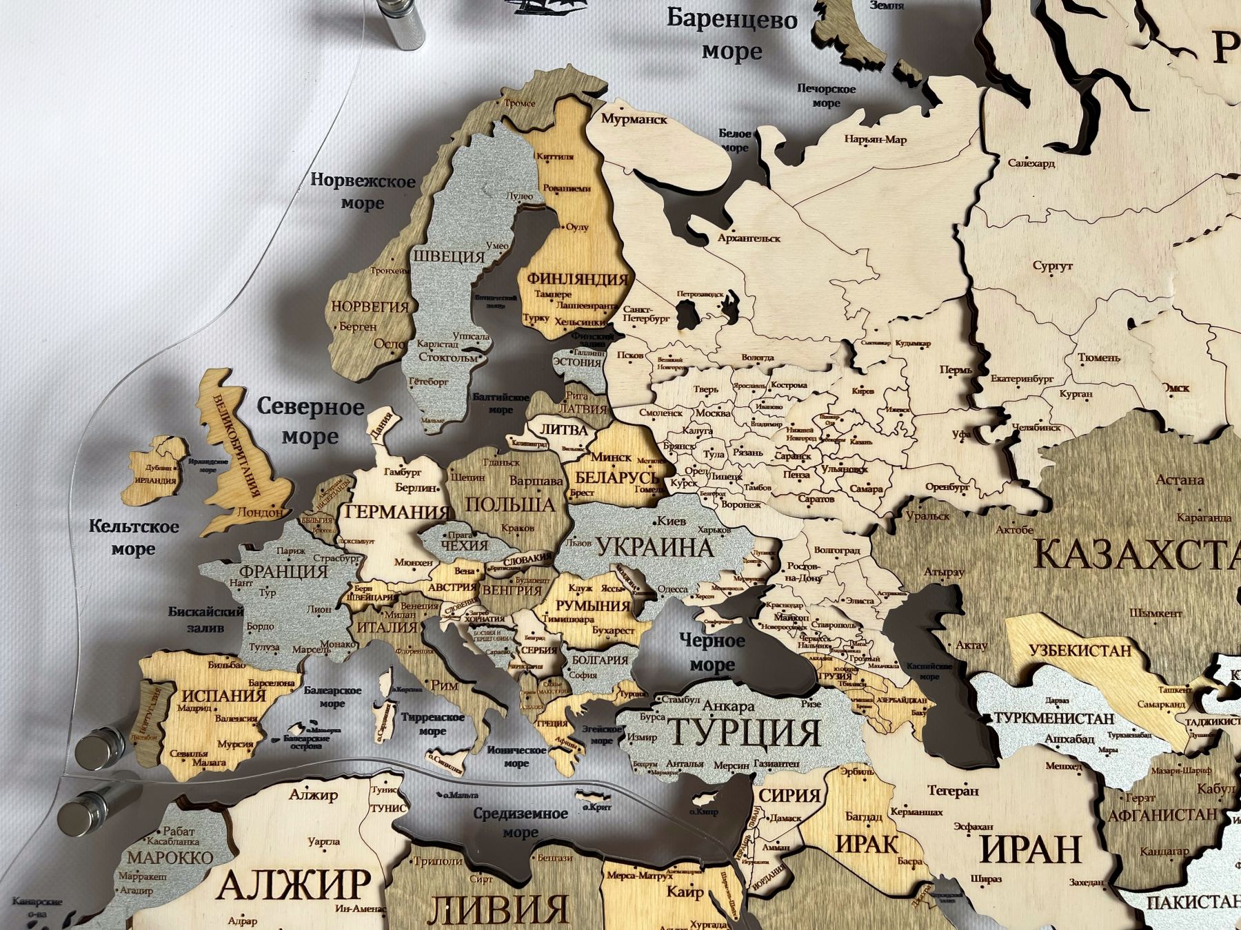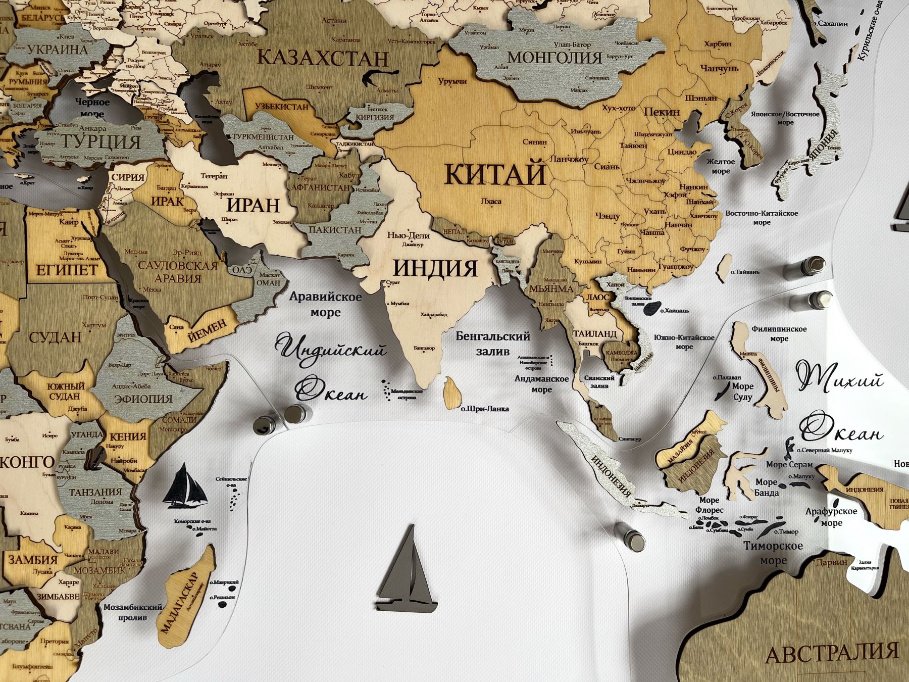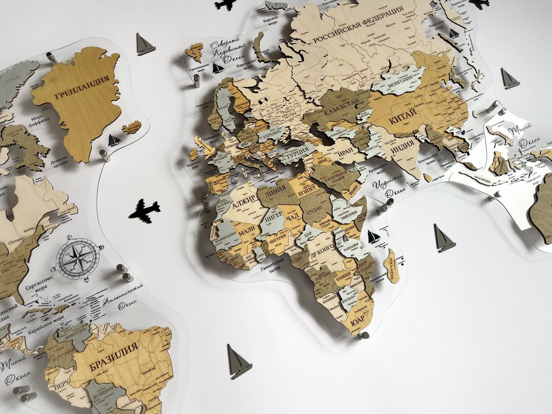 Цвет "Венеция", Многоуровневая карта мира из дерева