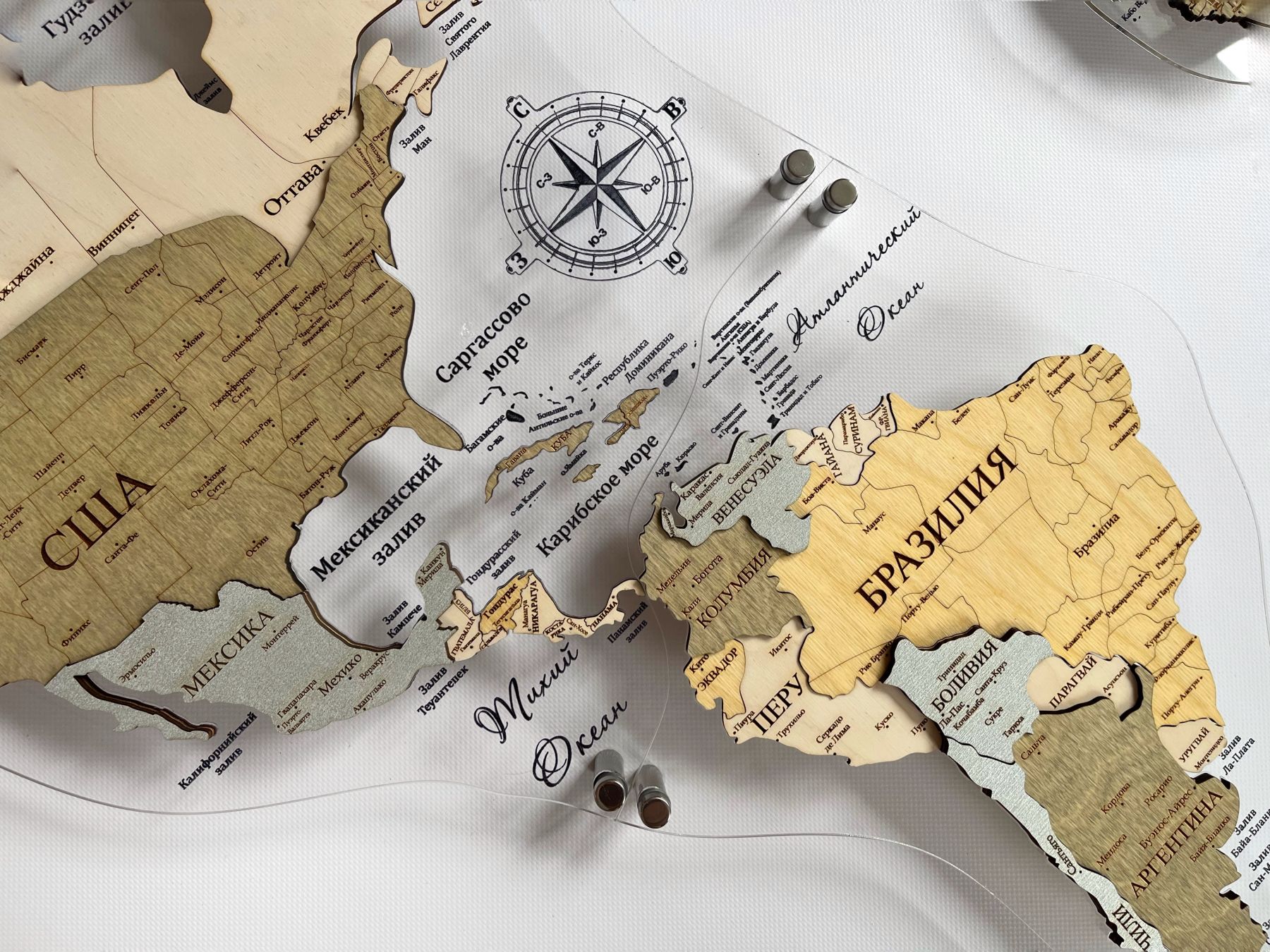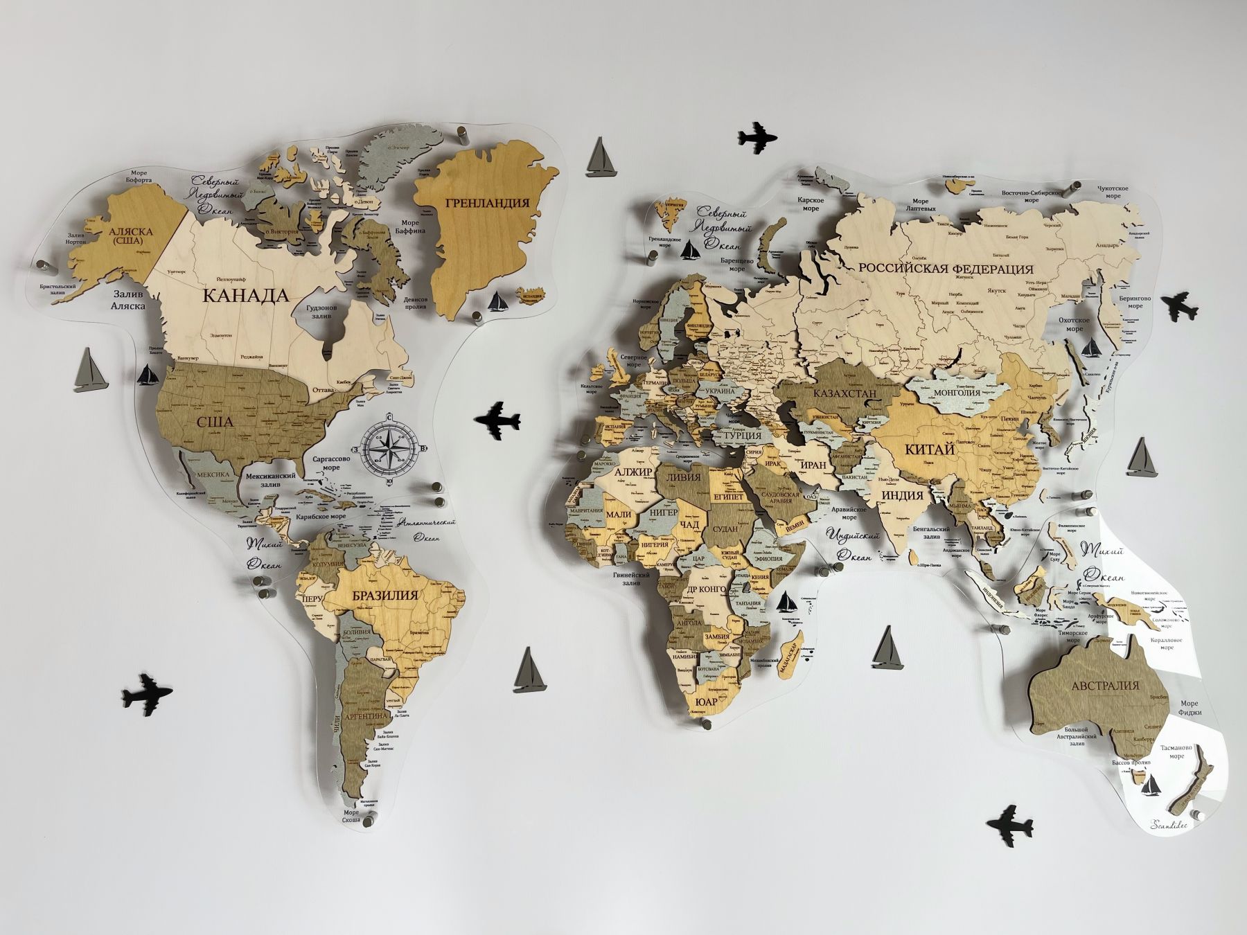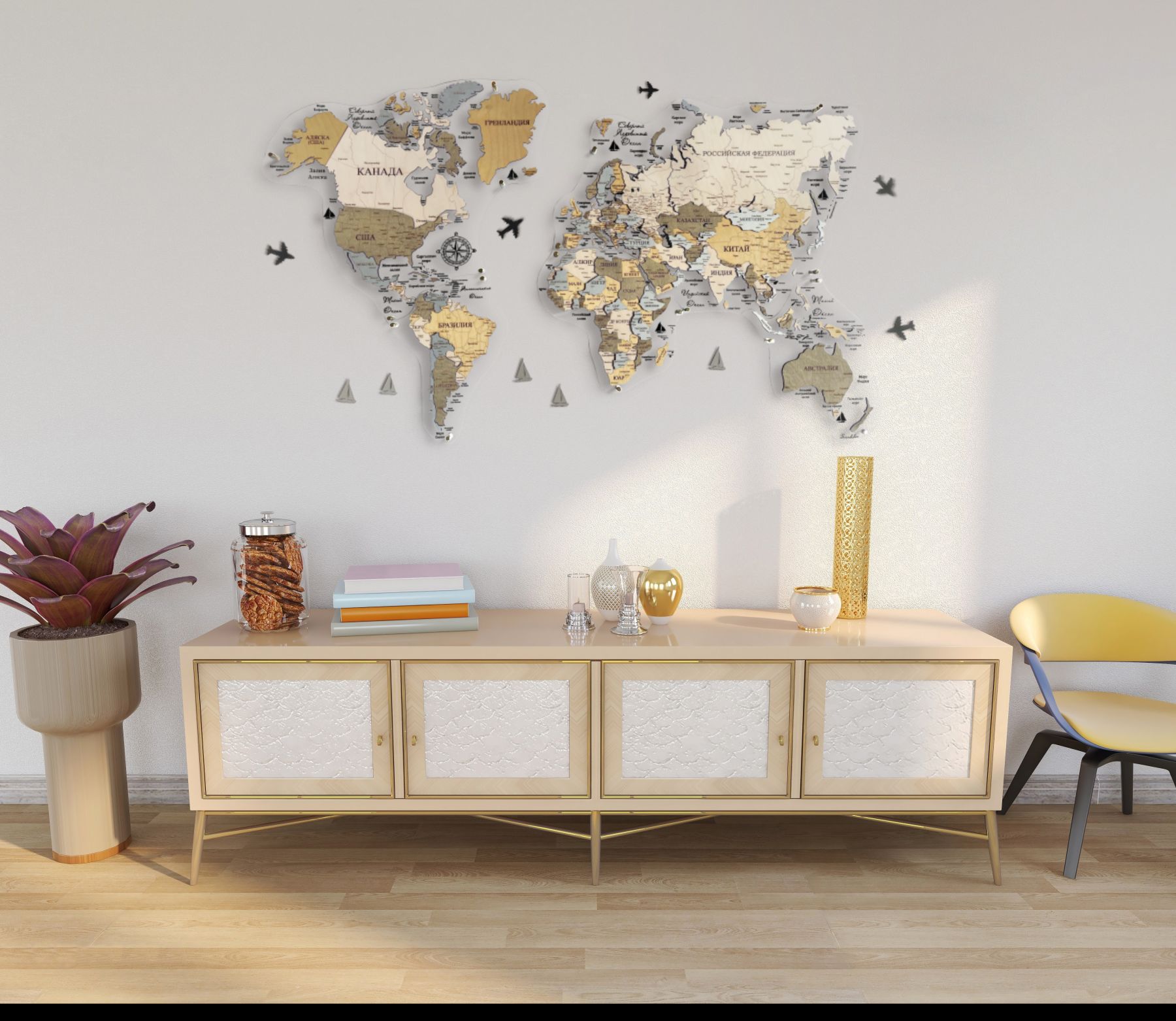 Цвет "Венеция", Многоуровневая карта мира из дерева