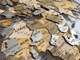 - деревянная карта мира на подложке из акрилового стекла - 1 шт (карта состоит из 3-5 крупных деталей, острова уже приклеены на подложку);