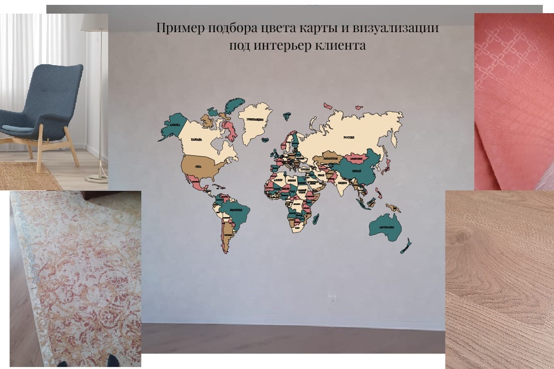 ИНДИВИДУАЛЬНЫЙ ЦВЕТ, Многоуровневая карта мира из дерева