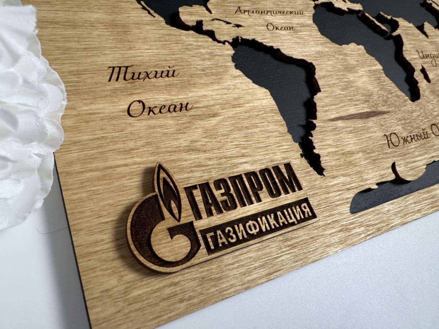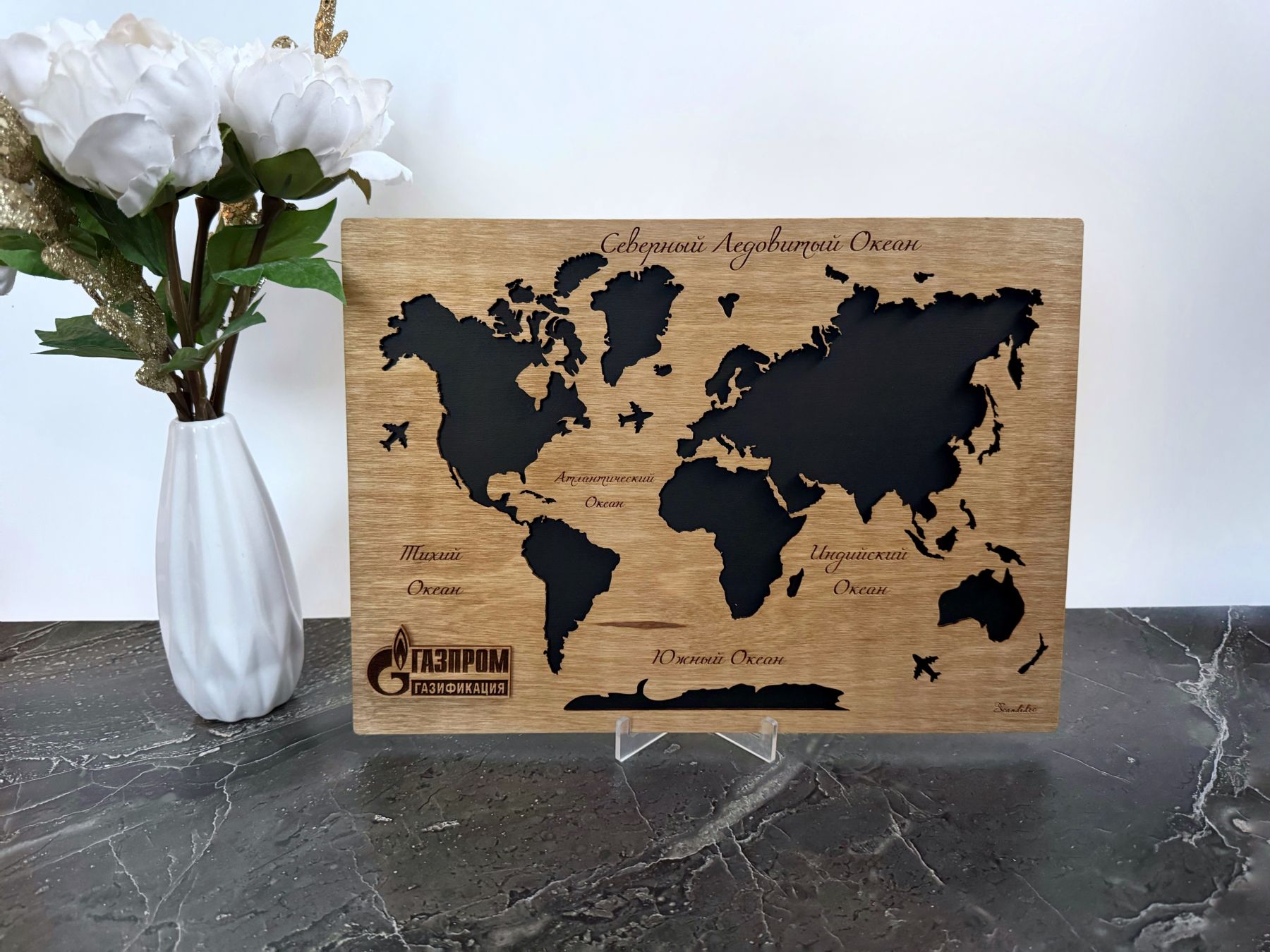 Стильная мини-карта мира из дерева, на деревянной подложке, формата А4 станет отличным вариантов корпоративного подарка для сотрудников или бизнес-партнеров.