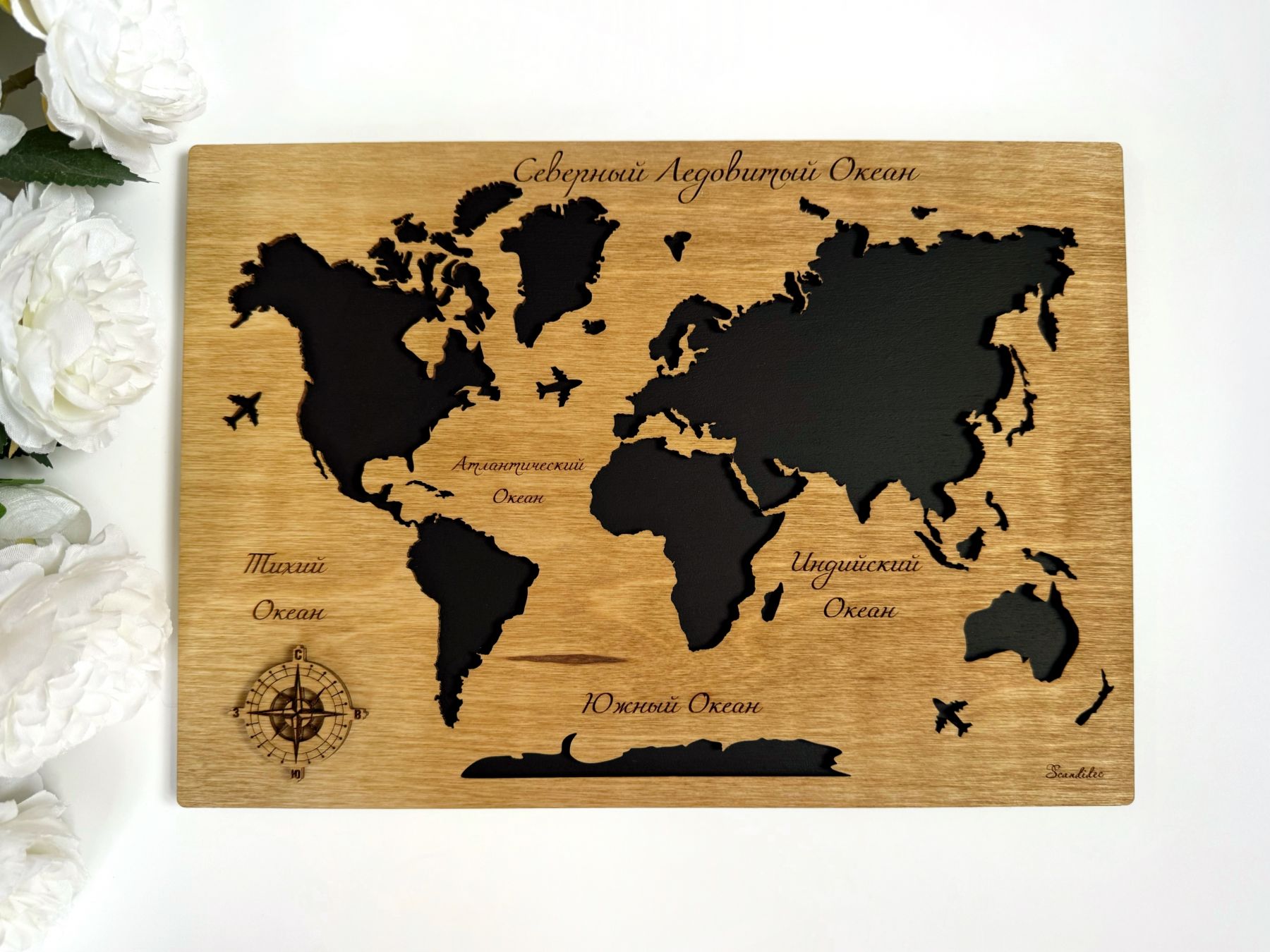 Стильная мини-карта мира из дерева, на деревянной подложке, формата А4 станет отличным вариантов корпоративного подарка для сотрудников или бизнес-партнеров.